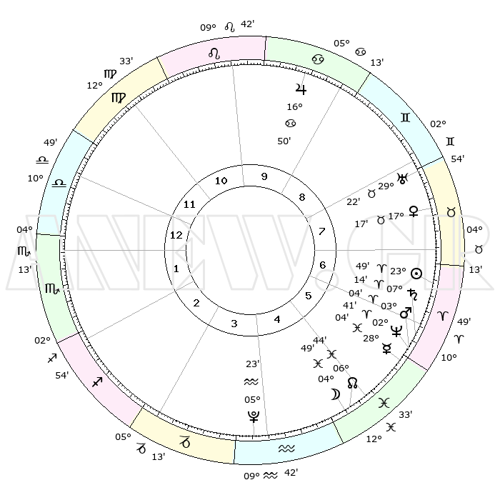 | | ΘΕΣΕΙΣ ΠΛΑΝΗΤΩΝ ΑΣΤΡΟΛΟΓΙΚΟΥ ΧΑΡΤΗ ΤΗΣ ΣΤΙΓΜΗΣ ΑΥΤΗΣ | | | | Πλανήτης | Ζώδιο | Μοίρες | Δεκαήμ. | Σε οίκο | Απόκλιση | | Ακμές των οίκων | | Ηλιος | Κριός | 23°45' | Τρίτο | 7 | 09 N 13 | | 1ος | 15°22' | Ζυγός | | Σελήνη | Ιχθείς | 03°58' | Πρώτο | 5 | 10 S 24 | | 2ος | 12°56' | Σκορπιός | | Ερμής | Ιχθείς | 27°59' | Τρίτο | 6 | 03 S 08 | | 3ος | 13°60' | Τοξότης | | Αφροδίτη | Ταύρος | 17°13' | Δεύτερο | 8 | 17 N 04 | | 4ος | 17°22' | Αιγόκερως | | Αρης | Κριός | 03°01' | Πρώτο | 6 | 00 N 17 | | 5ος | 20°18' | Υδροχόος | | Δίας | Καρκίνος | 16°50' | Δεύτερο | 9 | 22 N 45 | | 6ος | 20°03' | Ιχθείς | | Κρόνος | Κριός | 07°13' | Πρώτο | 6 | 00 N 54 | | 7ος | 15°22' | Κριός | | Ουρανός | Ταύρος | 29°21' | Τρίτο | 8 | 19 N 51 | | 8ος | 12°56' | Ταύρος | | Ποσειδώνας | Κριός | 02°41' | Πρώτο | 6 | 00 S 08 | | 9ος | 13°60' | Δίδυμοι | | Πλούτωνας | Υδροχόος | 05°23' | Πρώτο | 4 | 22 S 47 | | 10ος | 17°22' | Καρκίνος | | Β. Δεσμός | Ιχθείς | 06°44' | Πρώτο | 5 | 09 S 02 | | 11ος | 20°18' | Λέων | | Ωροσκόπος | Ζυγός | 15°22' | Δεύτερο | | | 12ος | 20°03' | Παρθένος | | Μεσουράνημα | Καρκίνος | 17°22' | Δεύτερο | | | |