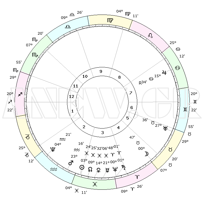 | | ΘΕΣΕΙΣ ΠΛΑΝΗΤΩΝ ΑΣΤΡΟΛΟΓΙΚΟΥ ΧΑΡΤΗ ΤΗΣ ΣΤΙΓΜΗΣ ΑΥΤΗΣ | | | | Πλανήτης | Ζώδιο | Μοίρες | Δεκαήμ. | Σε οίκο | Απόκλιση | | Ακμές των οίκων | | Ηλιος | Ιχθείς | 03°21' | Πρώτο | 3 | 10 S 17 | | 1ος | 01°07' | Τοξότης | | Σελήνη | Κριός | 29°53' | Τρίτο | 5 | 15 N 16 | | 2ος | 02°24' | Αιγόκερως | | Ερμής | Ιχθείς | 21°04' | Τρίτο | 4 | 01 S 56 | | 3ος | 08°18' | Υδροχόος | | Αφροδίτη | Ιχθείς | 14°27' | Δεύτερο | 4 | 07 S 27 | | 4ος | 14°22' | Ιχθείς | | Αρης | Υδροχόος | 23°13' | Τρίτο | 3 | 14 S 48 | | 5ος | 15°15' | Κριός | | Δίας | Καρκίνος | 15°34'R | Δεύτερο | 8 | 22 N 52 | | 6ος | 10°09' | Ταύρος | | Κρόνος | Κριός | 01°01' | Πρώτο | 4 | 01 S 34 | | 7ος | 01°07' | Δίδυμοι | | Ουρανός | Ταύρος | 27°36' | Τρίτο | 6 | 19 N 27 | | 8ος | 02°24' | Καρκίνος | | Ποσειδώνας | Κριός | 00°48' | Πρώτο | 4 | 00 S 53 | | 9ος | 08°18' | Λέων | | Πλούτωνας | Υδροχόος | 04°20' | Πρώτο | 2 | 22 S 54 | | 10ος | 14°22' | Παρθένος | | Β. Δεσμός | Ιχθείς | 09°25' | Πρώτο | 3 | 08 S 02 | | 11ος | 15°15' | Ζυγός | | Ωροσκόπος | Τοξότης | 01°07' | Πρώτο | | | 12ος | 10°09' | Σκορπιός | | Μεσουράνημα | Παρθένος | 14°22' | Δεύτερο | | | |