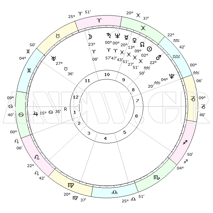 | | ΘΕΣΕΙΣ ΠΛΑΝΗΤΩΝ ΑΣΤΡΟΛΟΓΙΚΟΥ ΧΑΡΤΗ ΤΗΣ ΣΤΙΓΜΗΣ ΑΥΤΗΣ | | | | Πλανήτης | Ζώδιο | Μοίρες | Δεκαήμ. | Σε οίκο | Απόκλιση | | Ακμές των οίκων | | Ηλιος | Ιχθείς | 02°46' | Πρώτο | 10 | 10 S 29 | | 1ος | 10°32' | Δίδυμοι | | Σελήνη | Κριός | 21°57' | Τρίτο | 11 | 11 N 54 | | 2ος | 03°27' | Καρκίνος | | Ερμής | Ιχθείς | 20°39' | Τρίτο | 11 | 02 S 14 | | 3ος | 24°39' | Καρκίνος | | Αφροδίτη | Ιχθείς | 13°45' | Δεύτερο | 10 | 07 S 43 | | 4ος | 18°21' | Λέων | | Αρης | Υδροχόος | 22°46' | Τρίτο | 10 | 14 S 57 | | 5ος | 18°44' | Παρθένος | | Δίας | Καρκίνος | 15°36'R | Δεύτερο | 2 | 22 N 51 | | 6ος | 28°31' | Ζυγός | | Κρόνος | Κριός | 00°57' | Πρώτο | 11 | 01 S 35 | | 7ος | 10°32' | Τοξότης | | Ουρανός | Ταύρος | 27°35' | Τρίτο | 12 | 19 N 26 | | 8ος | 03°27' | Αιγόκερως | | Ποσειδώνας | Κριός | 00°47' | Πρώτο | 11 | 00 S 53 | | 9ος | 24°39' | Αιγόκερως | | Πλούτωνας | Υδροχόος | 04°19' | Πρώτο | 9 | 22 S 55 | | 10ος | 18°21' | Υδροχόος | | Β. Δεσμός | Ιχθείς | 09°27' | Πρώτο | 10 | 08 S 02 | | 11ος | 18°44' | Ιχθείς | | Ωροσκόπος | Δίδυμοι | 10°32' | Δεύτερο | | | 12ος | 28°31' | Κριός | | Μεσουράνημα | Υδροχόος | 18°21' | Δεύτερο | | | |