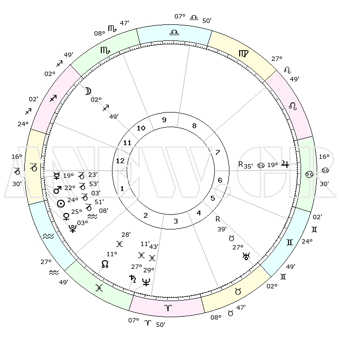 | | ΘΕΣΕΙΣ ΠΛΑΝΗΤΩΝ ΑΣΤΡΟΛΟΓΙΚΟΥ ΧΑΡΤΗ ΤΗΣ ΣΤΙΓΜΗΣ ΑΥΤΗΣ | | | | Πλανήτης | Ζώδιο | Μοίρες | Δεκαήμ. | Σε οίκο | Απόκλιση | | Ακμές των οίκων | | Ηλιος | Αιγόκερως | 23°58' | Τρίτο | 1 | 21 S 18 | | 1ος | 20°43' | Τοξότης | | Σελήνη | Τοξότης | 01°55' | Πρώτο | 12 | 25 S 30 | | 2ος | 25°38' | Αιγόκερως | | Ερμής | Αιγόκερως | 19°15' | Δεύτερο | 1 | 23 S 46 | | 3ος | 04°41' | Ιχθείς | | Αφροδίτη | Αιγόκερως | 25°45' | Τρίτο | 2 | 21 S 56 | | 4ος | 09°53' | Κριός | | Αρης | Αιγόκερως | 22°50' | Τρίτο | 1 | 22 S 27 | | 5ος | 07°44' | Ταύρος | | Δίας | Καρκίνος | 19°36'R | Δεύτερο | 7 | 22 N 16 | | 6ος | 00°17' | Δίδυμοι | | Κρόνος | Ιχθείς | 27°11' | Τρίτο | 3 | 03 S 09 | | 7ος | 20°43' | Δίδυμοι | | Ουρανός | Ταύρος | 27°39'R | Τρίτο | 5 | 19 N 26 | | 8ος | 25°38' | Καρκίνος | | Ποσειδώνας | Ιχθείς | 29°43' | Τρίτο | 3 | 01 S 20 | | 9ος | 04°41' | Παρθένος | | Πλούτωνας | Υδροχόος | 03°08' | Πρώτο | 2 | 23 S 08 | | 10ος | 09°53' | Ζυγός | | Β. Δεσμός | Ιχθείς | 11°28' | Δεύτερο | 3 | 07 S 16 | | 11ος | 07°43' | Σκορπιός | | Ωροσκόπος | Τοξότης | 20°43' | Τρίτο | | | 12ος | 00°17' | Τοξότης | | Μεσουράνημα | Ζυγός | 09°53' | Πρώτο | | | |