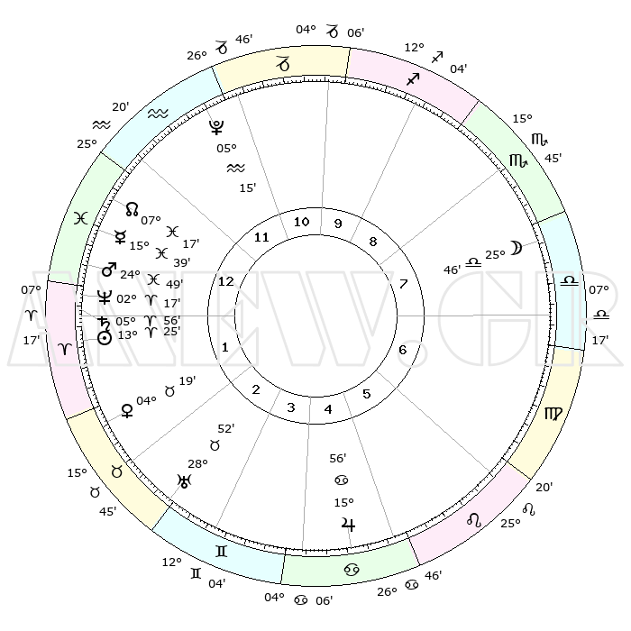 | | ΘΕΣΕΙΣ ΠΛΑΝΗΤΩΝ ΑΣΤΡΟΛΟΓΙΚΟΥ ΧΑΡΤΗ ΤΗΣ ΣΤΙΓΜΗΣ ΑΥΤΗΣ | | | | Πλανήτης | Ζώδιο | Μοίρες | Δεκαήμ. | Σε οίκο | Απόκλιση | | Ακμές των οίκων | | Ηλιος | Κριός | 13°21' | Δεύτερο | 2 | 05 N 16 | | 1ος | 26°47' | Υδροχόος | | Σελήνη | Ζυγός | 24°53' | Τρίτο | 8 | 13 S 07 | | 2ος | 12°25' | Κριός | | Ερμής | Ιχθείς | 15°35' | Δεύτερο | 1 | 07 S 10 | | 3ος | 15°46' | Ταύρος | | Αφροδίτη | Ταύρος | 04°14' | Πρώτο | 2 | 12 N 35 | | 4ος | 10°30' | Δίδυμοι | | Αρης | Ιχθείς | 24°46' | Τρίτο | 1 | 03 S 02 | | 5ος | 02°12' | Καρκίνος | | Δίας | Καρκίνος | 15°55' | Δεύτερο | 5 | 22 N 51 | | 6ος | 25°27' | Καρκίνος | | Κρόνος | Κριός | 05°55' | Πρώτο | 1 | 00 N 24 | | 7ος | 26°47' | Λέων | | Ουρανός | Ταύρος | 28°51' | Τρίτο | 3 | 19 N 44 | | 8ος | 12°25' | Ζυγός | | Ποσειδώνας | Κριός | 02°17' | Πρώτο | 1 | 00 S 17 | | 9ος | 15°46' | Σκορπιός | | Πλούτωνας | Υδροχόος | 05°15' | Πρώτο | 12 | 22 S 47 | | 10ος | 10°30' | Τοξότης | | Β. Δεσμός | Ιχθείς | 07°18' | Πρώτο | 1 | 08 S 50 | | 11ος | 02°12' | Αιγόκερως | | Ωροσκόπος | Υδροχόος | 26°47' | Τρίτο | | | 12ος | 25°27' | Αιγόκερως | | Μεσουράνημα | Τοξότης | 10°30' | Δεύτερο | | | |