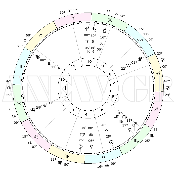 | ΘΕΣΕΙΣ ΠΛΑΝΗΤΩΝ ΑΣΤΡΟΛΟΓΙΚΟΥ ΧΑΡΤΗ ΤΗΣ ΣΤΙΓΜΗΣ ΑΥΤΗΣ | | Πλανήτης | Ζώδιο | Μοίρες | Δεκαήμ. | Σε οίκο | Απόκλιση | | Ακμές των οίκων | Ηλιος | Ζυγός | 25°21' | Τρίτο | 9 | 09 S 48 | | 1ος | 25°12' | Αιγόκερως | Σελήνη | Παρθένος | 21°35' | Τρίτο | 8 | 03 N 02 | | 2ος | 08°26' | Ιχθείς | Ερμής | Σκορπιός | 16°49' | Δεύτερο | 9 | 18 S 51 | | 3ος | 17°34' | Κριός | Αφροδίτη | Ζυγός | 05°43' | Πρώτο | 8 | 00 S 52 | | 4ος | 16°53' | Ταύρος | Αρης | Σκορπιός | 17°56' | Δεύτερο | 10 | 17 S 25 | | 5ος | 10°02' | Δίδυμοι | Δίας | Καρκίνος | 24°13' | Τρίτο | 6 | 21 N 19 | | 6ος | 01°19' | Καρκίνος | Κρόνος | Ιχθείς | 26°40'R | Τρίτο | 2 | 03 S 37 | | 7ος | 25°12' | Καρκίνος | Ουρανός | Δίδυμοι | 00°45'R | Πρώτο | 4 | 20 N 06 | | 8ος | 08°26' | Παρθένος | Ποσειδώνας | Κριός | 00°05'R | Πρώτο | 2 | 01 S 13 | | 9ος | 17°34' | Ζυγός | Πλούτωνας | Υδροχόος | 01°22' | Πρώτο | 1 | 23 S 32 | | 10ος | 16°53' | Σκορπιός | Β. Δεσμός | Ιχθείς | 16°07' | Δεύτερο | 2 | 05 S 29 | | 11ος | 10°02' | Τοξότης | Ωροσκόπος | Αιγόκερως | 25°12' | Τρίτο | | | 12ος | 01°19' | Αιγόκερως | Μεσουράνημα | Σκορπιός | 16°53' | Δεύτερο | | | |