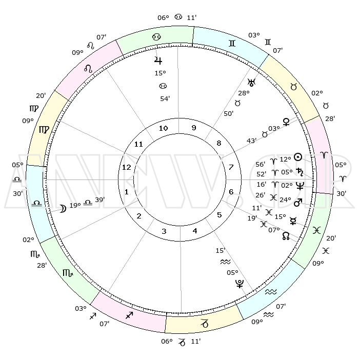 | | ΘΕΣΕΙΣ ΠΛΑΝΗΤΩΝ ΑΣΤΡΟΛΟΓΙΚΟΥ ΧΑΡΤΗ ΤΗΣ ΣΤΙΓΜΗΣ ΑΥΤΗΣ | | | | Πλανήτης | Ζώδιο | Μοίρες | Δεκαήμ. | Σε οίκο | Απόκλιση | | Ακμές των οίκων | | Ηλιος | Κριός | 12°52' | Δεύτερο | 8 | 05 N 05 | | 1ος | 17°04' | Παρθένος | | Σελήνη | Ζυγός | 18°52' | Δεύτερο | 2 | 10 S 29 | | 2ος | 12°37' | Ζυγός | | Ερμής | Ιχθείς | 15°08' | Δεύτερο | 6 | 07 S 17 | | 3ος | 12°29' | Σκορπιός | | Αφροδίτη | Ταύρος | 03°38' | Πρώτο | 8 | 12 N 22 | | 4ος | 15°25' | Τοξότης | | Αρης | Ιχθείς | 24°23' | Τρίτο | 7 | 03 S 11 | | 5ος | 18°42' | Αιγόκερως | | Δίας | Καρκίνος | 15°53' | Δεύτερο | 10 | 22 N 51 | | 6ος | 19°39' | Υδροχόος | | Κρόνος | Κριός | 05°52' | Πρώτο | 7 | 00 N 22 | | 7ος | 17°04' | Ιχθείς | | Ουρανός | Ταύρος | 28°50' | Τρίτο | 9 | 19 N 44 | | 8ος | 12°37' | Κριός | | Ποσειδώνας | Κριός | 02°16' | Πρώτο | 7 | 00 S 18 | | 9ος | 12°29' | Ταύρος | | Πλούτωνας | Υδροχόος | 05°15' | Πρώτο | 5 | 22 S 47 | | 10ος | 15°25' | Δίδυμοι | | Β. Δεσμός | Ιχθείς | 07°19' | Πρώτο | 6 | 08 S 49 | | 11ος | 18°42' | Καρκίνος | | Ωροσκόπος | Παρθένος | 17°04' | Δεύτερο | | | 12ος | 19°39' | Λέων | | Μεσουράνημα | Δίδυμοι | 15°25' | Δεύτερο | | | |