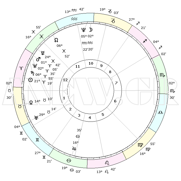 | | ΘΕΣΕΙΣ ΠΛΑΝΗΤΩΝ ΑΣΤΡΟΛΟΓΙΚΟΥ ΧΑΡΤΗ ΤΗΣ ΣΤΙΓΜΗΣ ΑΥΤΗΣ | | | | Πλανήτης | Ζώδιο | Μοίρες | Δεκαήμ. | Σε οίκο | Απόκλιση | | Ακμές των οίκων | | Ηλιος | Κριός | 21°09' | Τρίτο | 2 | 08 N 15 | | 1ος | 04°40' | Υδροχόος | | Σελήνη | Υδροχόος | 00°21' | Πρώτο | 12 | 23 S 10 | | 2ος | 19°28' | Ιχθείς | | Ερμής | Ιχθείς | 24°29' | Τρίτο | 2 | 04 S 24 | | 3ος | 27°08' | Κριός | | Αφροδίτη | Ταύρος | 13°58' | Δεύτερο | 3 | 16 N 01 | | 4ος | 24°49' | Ταύρος | | Αρης | Κριός | 00°57' | Πρώτο | 2 | 00 S 33 | | 5ος | 17°16' | Δίδυμοι | | Δίας | Καρκίνος | 16°35' | Δεύτερο | 6 | 22 N 47 | | 6ος | 08°53' | Καρκίνος | | Κρόνος | Κριός | 06°54' | Πρώτο | 2 | 00 N 46 | | 7ος | 04°40' | Λέων | | Ουρανός | Ταύρος | 29°14' | Τρίτο | 4 | 19 N 49 | | 8ος | 19°28' | Παρθένος | | Ποσειδώνας | Κριός | 02°35' | Πρώτο | 2 | 00 S 11 | | 9ος | 27°08' | Ζυγός | | Πλούτωνας | Υδροχόος | 05°21' | Πρώτο | 1 | 22 S 47 | | 10ος | 24°49' | Σκορπιός | | Β. Δεσμός | Ιχθείς | 06°52' | Πρώτο | 1 | 08 S 59 | | 11ος | 17°16' | Τοξότης | | Ωροσκόπος | Υδροχόος | 04°40' | Πρώτο | | | 12ος | 08°53' | Αιγόκερως | | Μεσουράνημα | Σκορπιός | 24°49' | Τρίτο | | | |