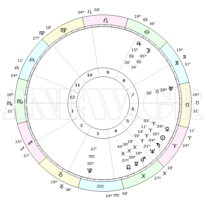 | | ΘΕΣΕΙΣ ΠΛΑΝΗΤΩΝ ΑΣΤΡΟΛΟΓΙΚΟΥ ΧΑΡΤΗ ΤΗΣ ΣΤΙΓΜΗΣ ΑΥΤΗΣ | | | | Πλανήτης | Ζώδιο | Μοίρες | Δεκαήμ. | Σε οίκο | Απόκλιση | | Ακμές των οίκων | | Ηλιος | Κριός | 05°08' | Πρώτο | 6 | 02 N 02 | | 1ος | 28°50' | Ζυγός | | Σελήνη | Καρκίνος | 04°43' | Πρώτο | 9 | 28 N 03 | | 2ος | 27°10' | Σκορπιός | | Ερμής | Ιχθείς | 09°37' | Πρώτο | 5 | 08 S 06 | | 3ος | 29°02' | Τοξότης | | Αφροδίτη | Κριός | 23°58' | Τρίτο | 6 | 08 N 40 | | 4ος | 03°09' | Υδροχόος | | Αρης | Ιχθείς | 18°15' | Δεύτερο | 5 | 05 S 37 | | 5ος | 06°05' | Ιχθείς | | Δίας | Καρκίνος | 15°26' | Δεύτερο | 9 | 22 N 54 | | 6ος | 04°51' | Κριός | | Κρόνος | Κριός | 04°53' | Πρώτο | 6 | 00 S 01 | | 7ος | 28°50' | Κριός | | Ουρανός | Ταύρος | 28°30' | Τρίτο | 8 | 19 N 39 | | 8ος | 27°10' | Ταύρος | | Ποσειδώνας | Κριός | 01°59' | Πρώτο | 5 | 00 S 25 | | 9ος | 29°02' | Δίδυμοι | | Πλούτωνας | Υδροχόος | 05°07' | Πρώτο | 4 | 22 S 48 | | 10ος | 03°09' | Λέων | | Β. Δεσμός | Ιχθείς | 07°44' | Πρώτο | 5 | 08 S 40 | | 11ος | 06°05' | Παρθένος | | Ωροσκόπος | Ζυγός | 28°50' | Τρίτο | | | 12ος | 04°51' | Ζυγός | | Μεσουράνημα | Λέων | 03°09' | Πρώτο | | | |