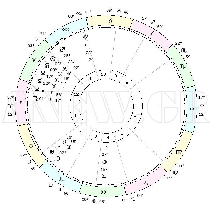 | | ΘΕΣΕΙΣ ΠΛΑΝΗΤΩΝ ΑΣΤΡΟΛΟΓΙΚΟΥ ΧΑΡΤΗ ΤΗΣ ΣΤΙΓΜΗΣ ΑΥΤΗΣ | | | | Πλανήτης | Ζώδιο | Μοίρες | Δεκαήμ. | Σε οίκο | Απόκλιση | | Ακμές των οίκων | | Ηλιος | Ιχθείς | 05°37' | Πρώτο | 12 | 09 S 27 | | 1ος | 14°19' | Ιχθείς | | Σελήνη | Δίδυμοι | 01°47' | Πρώτο | 3 | 25 N 38 | | 2ος | 27°54' | Κριός | | Ερμής | Ιχθείς | 22°13' | Τρίτο | 1 | 00 S 57 | | 3ος | 27°55' | Ταύρος | | Αφροδίτη | Ιχθείς | 17°16' | Δεύτερο | 1 | 06 S 20 | | 4ος | 21°06' | Δίδυμοι | | Αρης | Υδροχόος | 24°60' | Τρίτο | 12 | 14 S 13 | | 5ος | 12°55' | Καρκίνος | | Δίας | Καρκίνος | 15°27'R | Δεύτερο | 5 | 22 N 53 | | 6ος | 08°07' | Λέων | | Κρόνος | Κριός | 01°17' | Πρώτο | 1 | 01 S 27 | | 7ος | 14°19' | Παρθένος | | Ουρανός | Ταύρος | 27°38' | Τρίτο | 2 | 19 N 27 | | 8ος | 27°54' | Ζυγός | | Ποσειδώνας | Κριός | 00°53' | Πρώτο | 1 | 00 S 51 | | 9ος | 27°55' | Σκορπιός | | Πλούτωνας | Υδροχόος | 04°24' | Πρώτο | 11 | 22 S 54 | | 10ος | 21°06' | Τοξότης | | Β. Δεσμός | Ιχθείς | 09°18' | Πρώτο | 12 | 08 S 05 | | 11ος | 12°55' | Αιγόκερως | | Ωροσκόπος | Ιχθείς | 14°19' | Δεύτερο | | | 12ος | 08°07' | Υδροχόος | | Μεσουράνημα | Τοξότης | 21°06' | Τρίτο | | | |