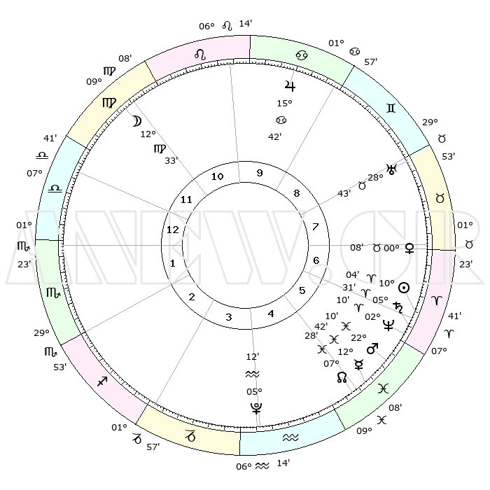| | ΘΕΣΕΙΣ ΠΛΑΝΗΤΩΝ ΑΣΤΡΟΛΟΓΙΚΟΥ ΧΑΡΤΗ ΤΗΣ ΣΤΙΓΜΗΣ ΑΥΤΗΣ | | | | Πλανήτης | Ζώδιο | Μοίρες | Δεκαήμ. | Σε οίκο | Απόκλιση | | Ακμές των οίκων | | Ηλιος | Κριός | 10°00' | Δεύτερο | 6 | 03 N 58 | | 1ος | 13°31' | Ζυγός | | Σελήνη | Παρθένος | 11°45' | Δεύτερο | 11 | 06 N 54 | | 2ος | 10°59' | Σκορπιός | | Ερμής | Ιχθείς | 12°39' | Δεύτερο | 5 | 07 S 49 | | 3ος | 11°57' | Τοξότης | | Αφροδίτη | Ταύρος | 00°04' | Πρώτο | 7 | 11 N 02 | | 4ος | 15°15' | Αιγόκερως | | Αρης | Ιχθείς | 22°07' | Τρίτο | 6 | 04 S 05 | | 5ος | 18°12' | Υδροχόος | | Δίας | Καρκίνος | 15°42' | Δεύτερο | 10 | 22 N 53 | | 6ος | 18°02' | Ιχθείς | | Κρόνος | Κριός | 05°30' | Πρώτο | 6 | 00 N 14 | | 7ος | 13°31' | Κριός | | Ουρανός | Ταύρος | 28°42' | Τρίτο | 8 | 19 N 42 | | 8ος | 10°59' | Ταύρος | | Ποσειδώνας | Κριός | 02°10' | Πρώτο | 6 | 00 S 20 | | 9ος | 11°57' | Δίδυμοι | | Πλούτωνας | Υδροχόος | 05°12' | Πρώτο | 4 | 22 S 48 | | 10ος | 15°15' | Καρκίνος | | Β. Δεσμός | Ιχθείς | 07°28' | Πρώτο | 5 | 08 S 46 | | 11ος | 18°12' | Λέων | | Ωροσκόπος | Ζυγός | 13°31' | Δεύτερο | | | 12ος | 18°02' | Παρθένος | | Μεσουράνημα | Καρκίνος | 15°15' | Δεύτερο | | | |