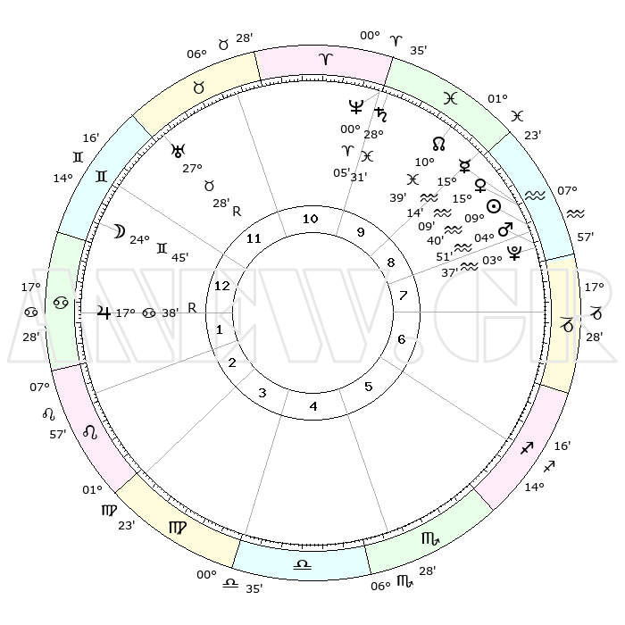 | | ΘΕΣΕΙΣ ΠΛΑΝΗΤΩΝ ΑΣΤΡΟΛΟΓΙΚΟΥ ΧΑΡΤΗ ΤΗΣ ΣΤΙΓΜΗΣ ΑΥΤΗΣ | | | | Πλανήτης | Ζώδιο | Μοίρες | Δεκαήμ. | Σε οίκο | Απόκλιση | | Ακμές των οίκων | | Ηλιος | Υδροχόος | 09°36' | Πρώτο | 9 | 17 S 51 | | 1ος | 24°35' | Δίδυμοι | | Σελήνη | Δίδυμοι | 23°42' | Τρίτο | 12 | 28 N 19 | | 2ος | 15°47' | Καρκίνος | | Ερμής | Υδροχόος | 15°06' | Δεύτερο | 9 | 18 S 13 | | 3ος | 07°17' | Λέων | | Αφροδίτη | Υδροχόος | 15°04' | Δεύτερο | 9 | 17 S 35 | | 4ος | 02°46' | Παρθένος | | Αρης | Υδροχόος | 04°47' | Πρώτο | 8 | 20 S 04 | | 5ος | 05°47' | Ζυγός | | Δίας | Καρκίνος | 17°38'R | Δεύτερο | 2 | 22 N 34 | | 6ος | 16°03' | Σκορπιός | | Κρόνος | Ιχθείς | 28°31' | Τρίτο | 10 | 02 S 35 | | 7ος | 24°35' | Τοξότης | | Ουρανός | Ταύρος | 27°28'R | Τρίτο | 12 | 19 N 24 | | 8ος | 15°46' | Αιγόκερως | | Ποσειδώνας | Κριός | 00°05' | Πρώτο | 10 | 01 S 11 | | 9ος | 07°17' | Υδροχόος | | Πλούτωνας | Υδροχόος | 03°37' | Πρώτο | 8 | 23 S 02 | | 10ος | 02°46' | Ιχθείς | | Β. Δεσμός | Ιχθείς | 10°40' | Δεύτερο | 10 | 07 S 34 | | 11ος | 05°47' | Κριός | | Ωροσκόπος | Δίδυμοι | 24°35' | Τρίτο | | | 12ος | 16°03' | Ταύρος | | Μεσουράνημα | Ιχθείς | 02°46' | Πρώτο | | | |