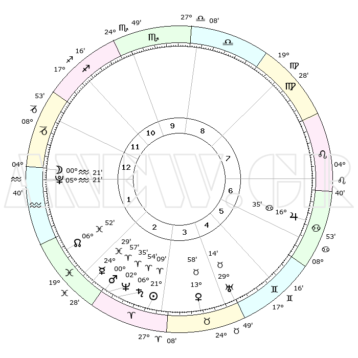 | | ΘΕΣΕΙΣ ΠΛΑΝΗΤΩΝ ΑΣΤΡΟΛΟΓΙΚΟΥ ΧΑΡΤΗ ΤΗΣ ΣΤΙΓΜΗΣ ΑΥΤΗΣ | | | | Πλανήτης | Ζώδιο | Μοίρες | Δεκαήμ. | Σε οίκο | Απόκλιση | | Ακμές των οίκων | | Ηλιος | Κριός | 21°05' | Τρίτο | 3 | 08 N 13 | | 1ος | 06°00' | Αιγόκερως | | Σελήνη | Αιγόκερως | 29°27' | Τρίτο | 1 | 23 S 25 | | 2ος | 14°41' | Υδροχόος | | Ερμής | Ιχθείς | 24°24' | Τρίτο | 2 | 04 S 26 | | 3ος | 24°58' | Ιχθείς | | Αφροδίτη | Ταύρος | 13°52' | Δεύτερο | 4 | 15 N 59 | | 4ος | 27°53' | Κριός | | Αρης | Κριός | 00°54' | Πρώτο | 3 | 00 S 34 | | 5ος | 23°17' | Ταύρος | | Δίας | Καρκίνος | 16°34' | Δεύτερο | 7 | 22 N 47 | | 6ος | 14°45' | Δίδυμοι | | Κρόνος | Κριός | 06°53' | Πρώτο | 3 | 00 N 46 | | 7ος | 06°00' | Καρκίνος | | Ουρανός | Ταύρος | 29°13' | Τρίτο | 5 | 19 N 49 | | 8ος | 14°41' | Λέων | | Ποσειδώνας | Κριός | 02°35' | Πρώτο | 3 | 00 S 11 | | 9ος | 24°58' | Παρθένος | | Πλούτωνας | Υδροχόος | 05°21' | Πρώτο | 1 | 22 S 47 | | 10ος | 27°53' | Ζυγός | | Β. Δεσμός | Ιχθείς | 06°53' | Πρώτο | 2 | 08 S 59 | | 11ος | 23°17' | Σκορπιός | | Ωροσκόπος | Αιγόκερως | 06°00' | Πρώτο | | | 12ος | 14°45' | Τοξότης | | Μεσουράνημα | Ζυγός | 27°53' | Τρίτο | | | |