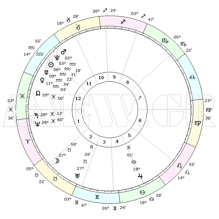 | | ΘΕΣΕΙΣ ΠΛΑΝΗΤΩΝ ΑΣΤΡΟΛΟΓΙΚΟΥ ΧΑΡΤΗ ΤΗΣ ΣΤΙΓΜΗΣ ΑΥΤΗΣ | | | | Πλανήτης | Ζώδιο | Μοίρες | Δεκαήμ. | Σε οίκο | Απόκλιση | | Ακμές των οίκων | | Ηλιος | Υδροχόος | 06°17' | Πρώτο | 12 | 18 S 42 | | 1ος | 13°01' | Υδροχόος | | Σελήνη | Ταύρος | 06°55' | Πρώτο | 3 | 17 N 58 | | 2ος | 28°37' | Ιχθείς | | Ερμής | Υδροχόος | 09°26' | Πρώτο | 12 | 19 S 53 | | 3ος | 04°43' | Ταύρος | | Αφροδίτη | Υδροχόος | 10°58' | Δεύτερο | 12 | 18 S 41 | | 4ος | 01°08' | Δίδυμοι | | Αρης | Υδροχόος | 02°15' | Πρώτο | 12 | 20 S 39 | | 5ος | 23°11' | Δίδυμοι | | Δίας | Καρκίνος | 18°02'R | Δεύτερο | 6 | 22 N 31 | | 6ος | 15°17' | Καρκίνος | | Κρόνος | Ιχθείς | 28°12' | Τρίτο | 1 | 02 S 43 | | 7ος | 13°01' | Λέων | | Ουρανός | Ταύρος | 27°29'R | Τρίτο | 3 | 19 N 25 | | 8ος | 28°37' | Παρθένος | | Ποσειδώνας | Ιχθείς | 29°59' | Τρίτο | 2 | 01 S 13 | | 9ος | 04°43' | Σκορπιός | | Πλούτωνας | Υδροχόος | 03°31' | Πρώτο | 12 | 23 S 03 | | 10ος | 01°08' | Τοξότης | | Β. Δεσμός | Ιχθείς | 10°50' | Δεύτερο | 1 | 07 S 30 | | 11ος | 23°11' | Τοξότης | | Ωροσκόπος | Υδροχόος | 13°01' | Δεύτερο | | | 12ος | 15°17' | Αιγόκερως | | Μεσουράνημα | Τοξότης | 01°08' | Πρώτο | | | |