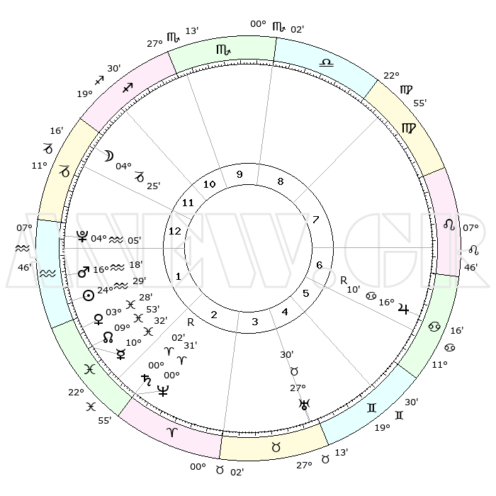 | | ΘΕΣΕΙΣ ΠΛΑΝΗΤΩΝ ΑΣΤΡΟΛΟΓΙΚΟΥ ΧΑΡΤΗ ΤΗΣ ΣΤΙΓΜΗΣ ΑΥΤΗΣ | | | | Πλανήτης | Ζώδιο | Μοίρες | Δεκαήμ. | Σε οίκο | Απόκλιση | | Ακμές των οίκων | | Ηλιος | Υδροχόος | 24°25' | Τρίτο | 2 | 13 S 23 | | 1ος | 13°39' | Αιγόκερως | | Σελήνη | Αιγόκερως | 03°43' | Πρώτο | 12 | 28 S 10 | | 2ος | 24°16' | Υδροχόος | | Ερμής | Ιχθείς | 10°26' | Δεύτερο | 2 | 07 S 58 | | 3ος | 04°27' | Κριός | | Αφροδίτη | Ιχθείς | 03°24' | Πρώτο | 2 | 11 S 37 | | 4ος | 05°57' | Ταύρος | | Αρης | Υδροχόος | 16°15' | Δεύτερο | 1 | 16 S 59 | | 5ος | 00°19' | Δίδυμοι | | Δίας | Καρκίνος | 16°10'R | Δεύτερο | 7 | 22 N 46 | | 6ος | 21°34' | Δίδυμοι | | Κρόνος | Κριός | 00°01'R | Πρώτο | 2 | 01 S 58 | | 7ος | 13°39' | Καρκίνος | | Ουρανός | Ταύρος | 27°30' | Τρίτο | 4 | 19 N 25 | | 8ος | 24°16' | Λέων | | Ποσειδώνας | Κριός | 00°30' | Πρώτο | 2 | 01 S 00 | | 9ος | 04°27' | Ζυγός | | Πλούτωνας | Υδροχόος | 04°05' | Πρώτο | 1 | 22 S 57 | | 10ος | 05°57' | Σκορπιός | | Β. Δεσμός | Ιχθείς | 09°53' | Πρώτο | 2 | 07 S 52 | | 11ος | 00°19' | Τοξότης | | Ωροσκόπος | Αιγόκερως | 13°39' | Δεύτερο | | | 12ος | 21°34' | Τοξότης | | Μεσουράνημα | Σκορπιός | 05°57' | Πρώτο | | | |