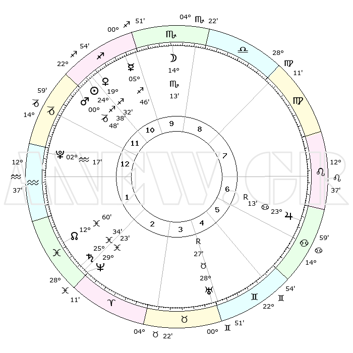 | | ΘΕΣΕΙΣ ΠΛΑΝΗΤΩΝ ΑΣΤΡΟΛΟΓΙΚΟΥ ΧΑΡΤΗ ΤΗΣ ΣΤΙΓΜΗΣ ΑΥΤΗΣ | | | | Πλανήτης | Ζώδιο | Μοίρες | Δεκαήμ. | Σε οίκο | Απόκλιση | | Ακμές των οίκων | | Ηλιος | Τοξότης | 24°14' | Τρίτο | 3 | 23 S 18 | | 1ος | 03°07' | Ζυγός | | Σελήνη | Σκορπιός | 09°28' | Πρώτο | 2 | 18 S 36 | | 2ος | 29°55' | Ζυγός | | Ερμής | Τοξότης | 05°13' | Πρώτο | 3 | 19 S 46 | | 3ος | 00°28' | Τοξότης | | Αφροδίτη | Τοξότης | 19°02' | Δεύτερο | 3 | 22 S 51 | | 4ος | 03°30' | Αιγόκερως | | Αρης | Αιγόκερως | 00°30' | Πρώτο | 3 | 24 S 13 | | 5ος | 06°27' | Υδροχόος | | Δίας | Καρκίνος | 23°16'R | Τρίτο | 10 | 21 N 37 | | 6ος | 06°45' | Ιχθείς | | Κρόνος | Ιχθείς | 25°34' | Τρίτο | 6 | 03 S 53 | | 7ος | 03°07' | Κριός | | Ουρανός | Ταύρος | 28°28'R | Τρίτο | 8 | 19 N 37 | | 8ος | 29°55' | Κριός | | Ποσειδώνας | Ιχθείς | 29°23' | Τρίτο | 6 | 01 S 29 | | 9ος | 00°29' | Δίδυμοι | | Πλούτωνας | Υδροχόος | 02°16' | Πρώτο | 4 | 23 S 19 | | 10ος | 03°30' | Καρκίνος | | Β. Δεσμός | Ιχθείς | 13°01' | Δεύτερο | 6 | 06 S 40 | | 11ος | 06°27' | Λέων | | Ωροσκόπος | Ζυγός | 03°07' | Πρώτο | | | 12ος | 06°45' | Παρθένος | | Μεσουράνημα | Καρκίνος | 03°30' | Πρώτο | | | |