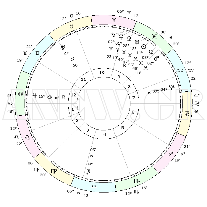 | | ΘΕΣΕΙΣ ΠΛΑΝΗΤΩΝ ΑΣΤΡΟΛΟΓΙΚΟΥ ΧΑΡΤΗ ΤΗΣ ΣΤΙΓΜΗΣ ΑΥΤΗΣ | | | | Πλανήτης | Ζώδιο | Μοίρες | Δεκαήμ. | Σε οίκο | Απόκλιση | | Ακμές των οίκων | | Ηλιος | Ιχθείς | 14°52' | Δεύτερο | 10 | 05 S 58 | | 1ος | 02°37' | Καρκίνος | | Σελήνη | Ζυγός | 08°18' | Πρώτο | 4 | 05 S 40 | | 2ος | 23°16' | Καρκίνος | | Ερμής | Ιχθείς | 18°51'R | Δεύτερο | 10 | 01 S 01 | | 3ος | 15°15' | Λέων | | Αφροδίτη | Ιχθείς | 28°45' | Τρίτο | 10 | 01 S 40 | | 4ος | 11°60' | Παρθένος | | Αρης | Ιχθείς | 02°15' | Πρώτο | 9 | 11 S 42 | | 5ος | 16°20' | Ζυγός | | Δίας | Καρκίνος | 15°08'R | Δεύτερο | 1 | 22 N 55 | | 6ος | 26°08' | Σκορπιός | | Κρόνος | Κριός | 02°22' | Πρώτο | 10 | 01 S 01 | | 7ος | 02°37' | Αιγόκερως | | Ουρανός | Ταύρος | 27°50' | Τρίτο | 12 | 19 N 30 | | 8ος | 23°16' | Αιγόκερως | | Ποσειδώνας | Κριός | 01°13' | Πρώτο | 10 | 00 S 43 | | 9ος | 15°15' | Υδροχόος | | Πλούτωνας | Υδροχόος | 04°39' | Πρώτο | 8 | 22 S 51 | | 10ος | 11°60' | Ιχθείς | | Β. Δεσμός | Ιχθείς | 08°49' | Πρώτο | 9 | 08 S 16 | | 11ος | 16°20' | Κριός | | Ωροσκόπος | Καρκίνος | 02°37' | Πρώτο | | | 12ος | 26°08' | Ταύρος | | Μεσουράνημα | Ιχθείς | 11°60' | Δεύτερο | | | |