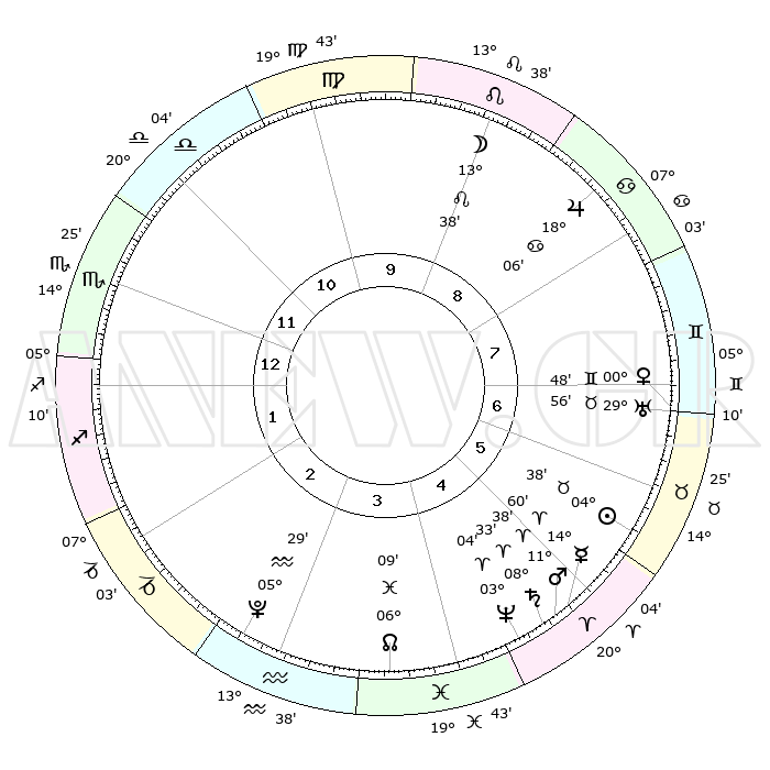 | | ΘΕΣΕΙΣ ΠΛΑΝΗΤΩΝ ΑΣΤΡΟΛΟΓΙΚΟΥ ΧΑΡΤΗ ΤΗΣ ΣΤΙΓΜΗΣ ΑΥΤΗΣ | | | | Πλανήτης | Ζώδιο | Μοίρες | Δεκαήμ. | Σε οίκο | Απόκλιση | | Ακμές των οίκων | | Ηλιος | Ταύρος | 03°27' | Πρώτο | 8 | 12 N 40 | | 1ος | 00°42' | Ζυγός | | Σελήνη | Καρκίνος | 26°55' | Τρίτο | 10 | 24 N 01 | | 2ος | 27°20' | Ζυγός | | Ερμής | Κριός | 12°58' | Δεύτερο | 7 | 02 N 48 | | 3ος | 27°48' | Σκορπιός | | Αφροδίτη | Ταύρος | 29°19' | Τρίτο | 9 | 20 N 33 | | 4ος | 00°47' | Αιγόκερως | | Αρης | Κριός | 10°42' | Δεύτερο | 7 | 03 N 22 | | 5ος | 03°45' | Υδροχόος | | Δίας | Καρκίνος | 17°57' | Δεύτερο | 10 | 22 N 37 | | 6ος | 04°10' | Ιχθείς | | Κρόνος | Κριός | 08°25' | Πρώτο | 7 | 01 N 21 | | 7ος | 00°42' | Κριός | | Ουρανός | Ταύρος | 29°52' | Τρίτο | 9 | 19 N 57 | | 8ος | 27°20' | Κριός | | Ποσειδώνας | Κριός | 03°01' | Πρώτο | 7 | 00 S 00 | | 9ος | 27°48' | Ταύρος | | Πλούτωνας | Υδροχόος | 05°28' | Πρώτο | 5 | 22 S 48 | | 10ος | 00°47' | Καρκίνος | | Β. Δεσμός | Ιχθείς | 06°12' | Πρώτο | 6 | 09 S 14 | | 11ος | 03°45' | Λέων | | Ωροσκόπος | Ζυγός | 00°42' | Πρώτο | | | 12ος | 04°10' | Παρθένος | | Μεσουράνημα | Καρκίνος | 00°47' | Πρώτο | | | |