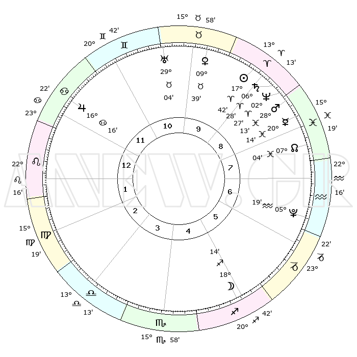 | | ΘΕΣΕΙΣ ΠΛΑΝΗΤΩΝ ΑΣΤΡΟΛΟΓΙΚΟΥ ΧΑΡΤΗ ΤΗΣ ΣΤΙΓΜΗΣ ΑΥΤΗΣ | | | | Πλανήτης | Ζώδιο | Μοίρες | Δεκαήμ. | Σε οίκο | Απόκλιση | | Ακμές των οίκων | | Ηλιος | Κριός | 17°38' | Δεύτερο | 9 | 06 N 55 | | 1ος | 02°57' | Λέων | | Σελήνη | Τοξότης | 17°27' | Δεύτερο | 5 | 27 S 55 | | 2ος | 24°12' | Λέων | | Ερμής | Ιχθείς | 20°10' | Τρίτο | 9 | 05 S 51 | | 3ος | 19°39' | Παρθένος | | Αφροδίτη | Ταύρος | 09°34' | Πρώτο | 10 | 14 N 31 | | 4ος | 21°02' | Ζυγός | | Αρης | Ιχθείς | 28°10' | Τρίτο | 9 | 01 S 40 | | 5ος | 26°59' | Σκορπιός | | Δίας | Καρκίνος | 16°16' | Δεύτερο | 12 | 22 N 49 | | 6ος | 02°13' | Αιγόκερως | | Κρόνος | Κριός | 06°28' | Πρώτο | 9 | 00 N 36 | | 7ος | 02°57' | Υδροχόος | | Ουρανός | Ταύρος | 29°03' | Τρίτο | 11 | 19 N 47 | | 8ος | 24°12' | Υδροχόος | | Ποσειδώνας | Κριός | 02°27' | Πρώτο | 9 | 00 S 14 | | 9ος | 19°39' | Ιχθείς | | Πλούτωνας | Υδροχόος | 05°19' | Πρώτο | 7 | 22 S 47 | | 10ος | 21°02' | Κριός | | Β. Δεσμός | Ιχθείς | 07°04' | Πρώτο | 8 | 08 S 55 | | 11ος | 26°59' | Ταύρος | | Ωροσκόπος | Λέων | 02°57' | Πρώτο | | | 12ος | 02°13' | Καρκίνος | | Μεσουράνημα | Κριός | 21°02' | Τρίτο | | | |