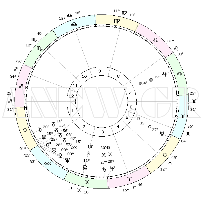 | | ΘΕΣΕΙΣ ΠΛΑΝΗΤΩΝ ΑΣΤΡΟΛΟΓΙΚΟΥ ΧΑΡΤΗ ΤΗΣ ΣΤΙΓΜΗΣ ΑΥΤΗΣ | | | | Πλανήτης | Ζώδιο | Μοίρες | Δεκαήμ. | Σε οίκο | Απόκλιση | | Ακμές των οίκων | | Ηλιος | Αιγόκερως | 27°59' | Τρίτο | 2 | 20 S 34 | | 1ος | 04°53' | Τοξότης | | Σελήνη | Αιγόκερως | 19°26' | Δεύτερο | 2 | 25 S 56 | | 2ος | 06°44' | Αιγόκερως | | Ερμής | Αιγόκερως | 25°41' | Τρίτο | 2 | 22 S 54 | | 3ος | 13°15' | Υδροχόος | | Αφροδίτη | Υδροχόος | 00°42' | Πρώτο | 2 | 21 S 02 | | 4ος | 19°21' | Ιχθείς | | Αρης | Αιγόκερως | 25°53' | Τρίτο | 2 | 21 S 56 | | 5ος | 19°44' | Κριός | | Δίας | Καρκίνος | 19°04'R | Δεύτερο | 8 | 22 N 21 | | 6ος | 14°08' | Ταύρος | | Κρόνος | Ιχθείς | 27°30' | Τρίτο | 4 | 03 S 01 | | 7ος | 04°53' | Δίδυμοι | | Ουρανός | Ταύρος | 27°35'R | Τρίτο | 6 | 19 N 26 | | 8ος | 06°44' | Καρκίνος | | Ποσειδώνας | Ιχθείς | 29°48' | Τρίτο | 4 | 01 S 18 | | 9ος | 13°15' | Λέων | | Πλούτωνας | Υδροχόος | 03°15' | Πρώτο | 2 | 23 S 07 | | 10ος | 19°21' | Παρθένος | | Β. Δεσμός | Ιχθείς | 11°16' | Δεύτερο | 3 | 07 S 20 | | 11ος | 19°44' | Ζυγός | | Ωροσκόπος | Τοξότης | 04°53' | Πρώτο | | | 12ος | 14°08' | Σκορπιός | | Μεσουράνημα | Παρθένος | 19°21' | Δεύτερο | | | |