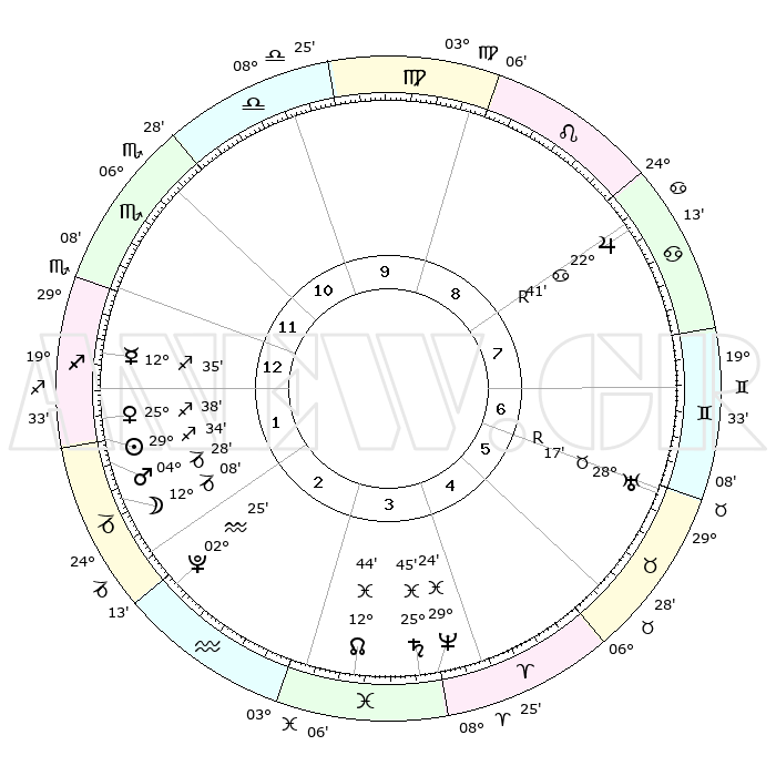 | | ΘΕΣΕΙΣ ΠΛΑΝΗΤΩΝ ΑΣΤΡΟΛΟΓΙΚΟΥ ΧΑΡΤΗ ΤΗΣ ΣΤΙΓΜΗΣ ΑΥΤΗΣ | | | | Πλανήτης | Ζώδιο | Μοίρες | Δεκαήμ. | Σε οίκο | Απόκλιση | | Ακμές των οίκων | | Ηλιος | Τοξότης | 29°22' | Τρίτο | 3 | 23 S 26 | | 1ος | 20°49' | Ζυγός | | Σελήνη | Αιγόκερως | 09°42' | Πρώτο | 3 | 27 S 30 | | 2ος | 18°42' | Σκορπιός | | Ερμής | Τοξότης | 12°18' | Δεύτερο | 2 | 21 S 30 | | 3ος | 20°02' | Τοξότης | | Αφροδίτη | Τοξότης | 25°23' | Τρίτο | 3 | 23 S 26 | | 4ος | 23°40' | Αιγόκερως | | Αρης | Αιγόκερως | 04°19' | Πρώτο | 3 | 24 S 11 | | 5ος | 26°37' | Υδροχόος | | Δίας | Καρκίνος | 22°43'R | Τρίτο | 9 | 21 N 44 | | 6ος | 26°01' | Ιχθείς | | Κρόνος | Ιχθείς | 25°45' | Τρίτο | 5 | 03 S 48 | | 7ος | 20°49' | Κριός | | Ουρανός | Ταύρος | 28°17'R | Τρίτο | 8 | 19 N 35 | | 8ος | 18°42' | Ταύρος | | Ποσειδώνας | Ιχθείς | 29°24' | Τρίτο | 6 | 01 S 28 | | 9ος | 20°02' | Δίδυμοι | | Πλούτωνας | Υδροχόος | 02°24' | Πρώτο | 4 | 23 S 17 | | 10ος | 23°40' | Καρκίνος | | Β. Δεσμός | Ιχθείς | 12°45' | Δεύτερο | 5 | 06 S 46 | | 11ος | 26°37' | Λέων | | Ωροσκόπος | Ζυγός | 20°49' | Τρίτο | | | 12ος | 26°01' | Παρθένος | | Μεσουράνημα | Καρκίνος | 23°40' | Τρίτο | | | |