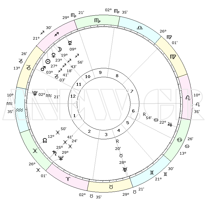 | | ΘΕΣΕΙΣ ΠΛΑΝΗΤΩΝ ΑΣΤΡΟΛΟΓΙΚΟΥ ΧΑΡΤΗ ΤΗΣ ΣΤΙΓΜΗΣ ΑΥΤΗΣ | | | | Πλανήτης | Ζώδιο | Μοίρες | Δεκαήμ. | Σε οίκο | Απόκλιση | | Ακμές των οίκων | | Ηλιος | Τοξότης | 27°21' | Τρίτο | 3 | 23 S 24 | | 1ος | 25°18' | Ζυγός | | Σελήνη | Τοξότης | 15°52' | Δεύτερο | 2 | 27 S 39 | | 2ος | 23°27' | Σκορπιός | | Ερμής | Τοξότης | 09°29' | Πρώτο | 2 | 20 S 51 | | 3ος | 25°04' | Τοξότης | | Αφροδίτη | Τοξότης | 22°53' | Τρίτο | 2 | 23 S 14 | | 4ος | 28°57' | Αιγόκερως | | Αρης | Αιγόκερως | 02°49' | Πρώτο | 3 | 24 S 12 | | 5ος | 01°54' | Ιχθείς | | Δίας | Καρκίνος | 22°56'R | Τρίτο | 9 | 21 N 41 | | 6ος | 00°58' | Κριός | | Κρόνος | Ιχθείς | 25°40' | Τρίτο | 5 | 03 S 50 | | 7ος | 25°18' | Κριός | | Ουρανός | Ταύρος | 28°21'R | Τρίτο | 8 | 19 N 35 | | 8ος | 23°27' | Ταύρος | | Ποσειδώνας | Ιχθείς | 29°24' | Τρίτο | 5 | 01 S 28 | | 9ος | 25°04' | Δίδυμοι | | Πλούτωνας | Υδροχόος | 02°21' | Πρώτο | 4 | 23 S 18 | | 10ος | 28°57' | Καρκίνος | | Β. Δεσμός | Ιχθείς | 12°51' | Δεύτερο | 5 | 06 S 44 | | 11ος | 01°54' | Παρθένος | | Ωροσκόπος | Ζυγός | 25°18' | Τρίτο | | | 12ος | 00°58' | Ζυγός | | Μεσουράνημα | Καρκίνος | 28°57' | Τρίτο | | | |