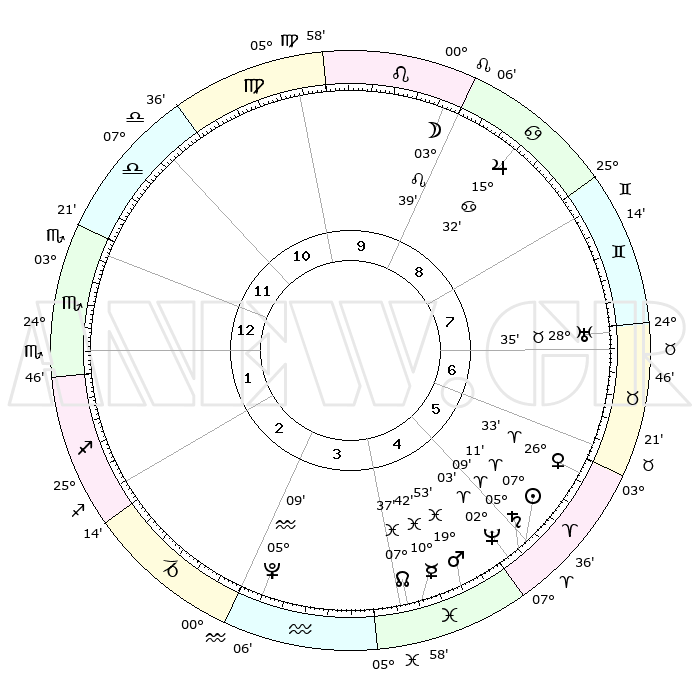 | | ΘΕΣΕΙΣ ΠΛΑΝΗΤΩΝ ΑΣΤΡΟΛΟΓΙΚΟΥ ΧΑΡΤΗ ΤΗΣ ΣΤΙΓΜΗΣ ΑΥΤΗΣ | | | | Πλανήτης | Ζώδιο | Μοίρες | Δεκαήμ. | Σε οίκο | Απόκλιση | | Ακμές των οίκων | | Ηλιος | Κριός | 07°08' | Πρώτο | 5 | 02 N 50 | | 1ος | 07°29' | Σκορπιός | | Σελήνη | Λέων | 02°50' | Πρώτο | 9 | 22 N 30 | | 2ος | 06°22' | Τοξότης | | Ερμής | Ιχθείς | 10°40' | Δεύτερο | 4 | 08 S 05 | | 3ος | 08°60' | Αιγόκερως | | Αφροδίτη | Κριός | 26°28' | Τρίτο | 6 | 09 N 38 | | 4ος | 13°43' | Υδροχόος | | Αρης | Ιχθείς | 19°50' | Δεύτερο | 5 | 05 S 00 | | 5ος | 16°29' | Ιχθείς | | Δίας | Καρκίνος | 15°32' | Δεύτερο | 9 | 22 N 54 | | 6ος | 14°24' | Κριός | | Κρόνος | Κριός | 05°08' | Πρώτο | 5 | 00 N 05 | | 7ος | 07°29' | Ταύρος | | Ουρανός | Ταύρος | 28°35' | Τρίτο | 7 | 19 N 40 | | 8ος | 06°22' | Δίδυμοι | | Ποσειδώνας | Κριός | 02°03' | Πρώτο | 5 | 00 S 23 | | 9ος | 08°60' | Καρκίνος | | Πλούτωνας | Υδροχόος | 05°09' | Πρώτο | 3 | 22 S 48 | | 10ος | 13°43' | Λέων | | Β. Δεσμός | Ιχθείς | 07°38' | Πρώτο | 4 | 08 S 42 | | 11ος | 16°29' | Παρθένος | | Ωροσκόπος | Σκορπιός | 07°29' | Πρώτο | | | 12ος | 14°24' | Ζυγός | | Μεσουράνημα | Λέων | 13°43' | Δεύτερο | | | |