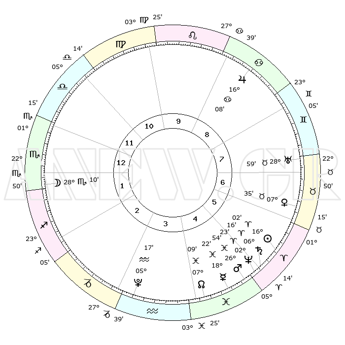 | | ΘΕΣΕΙΣ ΠΛΑΝΗΤΩΝ ΑΣΤΡΟΛΟΓΙΚΟΥ ΧΑΡΤΗ ΤΗΣ ΣΤΙΓΜΗΣ ΑΥΤΗΣ | | | | Πλανήτης | Ζώδιο | Μοίρες | Δεκαήμ. | Σε οίκο | Απόκλιση | | Ακμές των οίκων | | Ηλιος | Κριός | 15°59' | Δεύτερο | 6 | 06 N 17 | | 1ος | 03°19' | Σκορπιός | | Σελήνη | Σκορπιός | 27°22' | Τρίτο | 1 | 24 S 30 | | 2ος | 01°56' | Τοξότης | | Ερμής | Ιχθείς | 18°18' | Δεύτερο | 5 | 06 S 25 | | 3ος | 04°10' | Αιγόκερως | | Αφροδίτη | Ταύρος | 07°30' | Πρώτο | 7 | 13 N 47 | | 4ος | 08°36' | Υδροχόος | | Αρης | Ιχθείς | 26°51' | Τρίτο | 5 | 02 S 12 | | 5ος | 11°28' | Ιχθείς | | Δίας | Καρκίνος | 16°07' | Δεύτερο | 9 | 22 N 50 | | 6ος | 09°49' | Κριός | | Κρόνος | Κριός | 06°15' | Πρώτο | 5 | 00 N 31 | | 7ος | 03°19' | Ταύρος | | Ουρανός | Ταύρος | 28°59' | Τρίτο | 7 | 19 N 46 | | 8ος | 01°56' | Δίδυμοι | | Ποσειδώνας | Κριός | 02°23' | Πρώτο | 5 | 00 S 15 | | 9ος | 04°10' | Καρκίνος | | Πλούτωνας | Υδροχόος | 05°17' | Πρώτο | 3 | 22 S 47 | | 10ος | 08°36' | Λέων | | Β. Δεσμός | Ιχθείς | 07°09' | Πρώτο | 4 | 08 S 53 | | 11ος | 11°28' | Παρθένος | | Ωροσκόπος | Σκορπιός | 03°19' | Πρώτο | | | 12ος | 09°49' | Ζυγός | | Μεσουράνημα | Λέων | 08°36' | Πρώτο | | | |