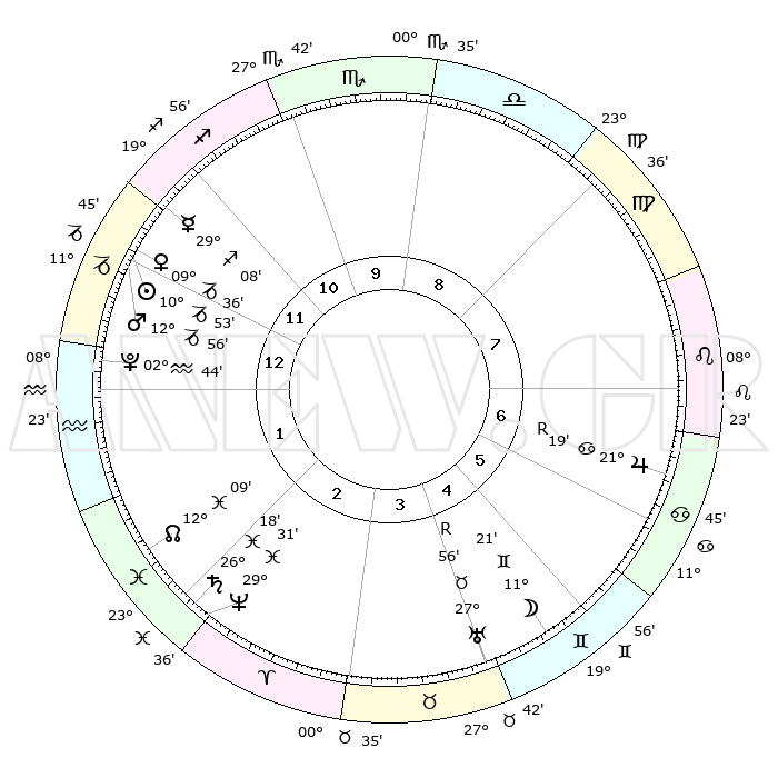 | | ΘΕΣΕΙΣ ΠΛΑΝΗΤΩΝ ΑΣΤΡΟΛΟΓΙΚΟΥ ΧΑΡΤΗ ΤΗΣ ΣΤΙΓΜΗΣ ΑΥΤΗΣ | | | | Πλανήτης | Ζώδιο | Μοίρες | Δεκαήμ. | Σε οίκο | Απόκλιση | | Ακμές των οίκων | | Ηλιος | Αιγόκερως | 10°49' | Δεύτερο | 1 | 23 S 00 | | 1ος | 09°37' | Αιγόκερως | | Σελήνη | Δίδυμοι | 10°17' | Δεύτερο | 5 | 27 N 00 | | 2ος | 19°13' | Υδροχόος | | Ερμής | Τοξότης | 29°01' | Τρίτο | 12 | 24 S 02 | | 3ος | 29°31' | Ιχθείς | | Αφροδίτη | Αιγόκερως | 09°31' | Πρώτο | 12 | 23 S 36 | | 4ος | 01°46' | Ταύρος | | Αρης | Αιγόκερως | 12°53' | Δεύτερο | 1 | 23 S 42 | | 5ος | 26°40' | Ταύρος | | Δίας | Καρκίνος | 21°19'R | Τρίτο | 7 | 21 N 59 | | 6ος | 18°00' | Δίδυμοι | | Κρόνος | Ιχθείς | 26°18' | Τρίτο | 2 | 03 S 33 | | 7ος | 09°37' | Καρκίνος | | Ουρανός | Ταύρος | 27°56'R | Τρίτο | 5 | 19 N 30 | | 8ος | 19°13' | Λέων | | Ποσειδώνας | Ιχθείς | 29°31' | Τρίτο | 2 | 01 S 25 | | 9ος | 29°31' | Παρθένος | | Πλούτωνας | Υδροχόος | 02°44' | Πρώτο | 1 | 23 S 13 | | 10ος | 01°46' | Σκορπιός | | Β. Δεσμός | Ιχθείς | 12°09' | Δεύτερο | 2 | 07 S 00 | | 11ος | 26°40' | Σκορπιός | | Ωροσκόπος | Αιγόκερως | 09°37' | Πρώτο | | | 12ος | 18°00' | Τοξότης | | Μεσουράνημα | Σκορπιός | 01°46' | Πρώτο | | | |