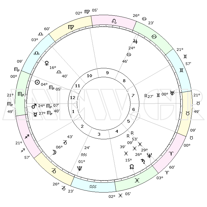 | | ΘΕΣΕΙΣ ΠΛΑΝΗΤΩΝ ΑΣΤΡΟΛΟΓΙΚΟΥ ΧΑΡΤΗ ΤΗΣ ΣΤΙΓΜΗΣ ΑΥΤΗΣ | | | | Πλανήτης | Ζώδιο | Μοίρες | Δεκαήμ. | Σε οίκο | Απόκλιση | | Ακμές των οίκων | | Ηλιος | Σκορπιός | 03°58' | Πρώτο | 1 | 12 S 50 | | 1ος | 17°30' | Ζυγός | | Σελήνη | Αιγόκερως | 05°18' | Πρώτο | 3 | 28 S 12 | | 2ος | 15°12' | Σκορπιός | | Ερμής | Σκορπιός | 27°32' | Τρίτο | 2 | 22 S 17 | | 3ος | 16°22' | Τοξότης | | Αφροδίτη | Ζυγός | 16°31' | Δεύτερο | 12 | 05 S 05 | | 4ος | 19°50' | Αιγόκερως | | Αρης | Σκορπιός | 24°02' | Τρίτο | 2 | 19 S 07 | | 5ος | 22°47' | Υδροχόος | | Δίας | Καρκίνος | 24°46' | Τρίτο | 10 | 21 N 15 | | 6ος | 22°23' | Ιχθείς | | Κρόνος | Ιχθείς | 26°10'R | Τρίτο | 6 | 03 S 48 | | 7ος | 17°30' | Κριός | | Ουρανός | Δίδυμοι | 00°27'R | Πρώτο | 8 | 20 N 02 | | 8ος | 15°12' | Ταύρος | | Ποσειδώνας | Ιχθείς | 29°53'R | Τρίτο | 6 | 01 S 18 | | 9ος | 16°22' | Δίδυμοι | | Πλούτωνας | Υδροχόος | 01°24' | Πρώτο | 4 | 23 S 31 | | 10ος | 19°50' | Καρκίνος | | Β. Δεσμός | Ιχθείς | 15°39' | Δεύτερο | 5 | 05 S 39 | | 11ος | 22°47' | Λέων | | Ωροσκόπος | Ζυγός | 17°30' | Δεύτερο | | | 12ος | 22°23' | Παρθένος | | Μεσουράνημα | Καρκίνος | 19°50' | Δεύτερο | | | |