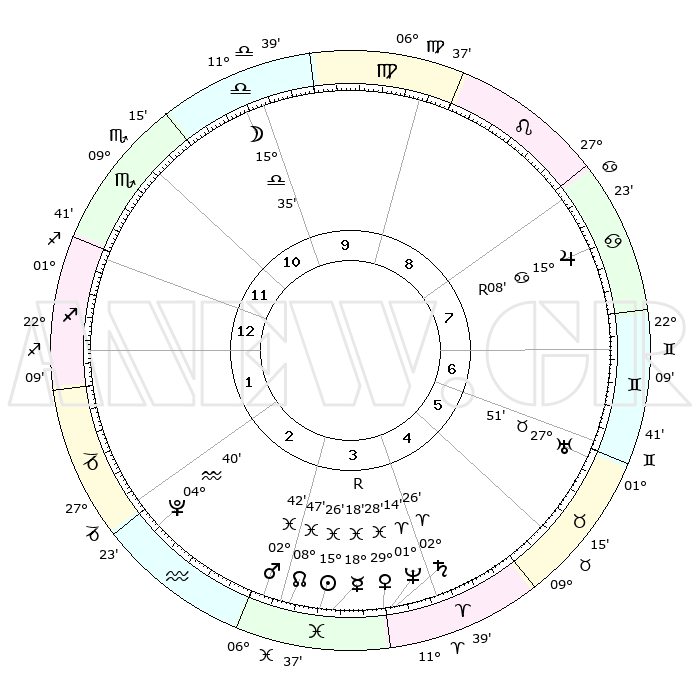 | | ΘΕΣΕΙΣ ΠΛΑΝΗΤΩΝ ΑΣΤΡΟΛΟΓΙΚΟΥ ΧΑΡΤΗ ΤΗΣ ΣΤΙΓΜΗΣ ΑΥΤΗΣ | | | | Πλανήτης | Ζώδιο | Μοίρες | Δεκαήμ. | Σε οίκο | Απόκλιση | | Ακμές των οίκων | | Ηλιος | Ιχθείς | 15°22' | Δεύτερο | 4 | 05 S 46 | | 1ος | 01°09' | Τοξότης | | Σελήνη | Ζυγός | 14°42' | Δεύτερο | 10 | 08 S 38 | | 2ος | 02°27' | Αιγόκερως | | Ερμής | Ιχθείς | 18°22'R | Δεύτερο | 4 | 01 S 12 | | 3ος | 08°21' | Υδροχόος | | Αφροδίτη | Ιχθείς | 29°23' | Τρίτο | 4 | 01 S 25 | | 4ος | 14°25' | Ιχθείς | | Αρης | Ιχθείς | 02°39' | Πρώτο | 3 | 11 S 33 | | 5ος | 15°18' | Κριός | | Δίας | Καρκίνος | 15°08'R | Δεύτερο | 8 | 22 N 55 | | 6ος | 10°12' | Ταύρος | | Κρόνος | Κριός | 02°26' | Πρώτο | 4 | 00 S 59 | | 7ος | 01°09' | Δίδυμοι | | Ουρανός | Ταύρος | 27°51' | Τρίτο | 6 | 19 N 30 | | 8ος | 02°27' | Καρκίνος | | Ποσειδώνας | Κριός | 01°14' | Πρώτο | 4 | 00 S 43 | | 9ος | 08°21' | Λέων | | Πλούτωνας | Υδροχόος | 04°40' | Πρώτο | 2 | 22 S 51 | | 10ος | 14°25' | Παρθένος | | Β. Δεσμός | Ιχθείς | 08°47' | Πρώτο | 3 | 08 S 16 | | 11ος | 15°18' | Ζυγός | | Ωροσκόπος | Τοξότης | 01°09' | Πρώτο | | | 12ος | 10°12' | Σκορπιός | | Μεσουράνημα | Παρθένος | 14°25' | Δεύτερο | | | |