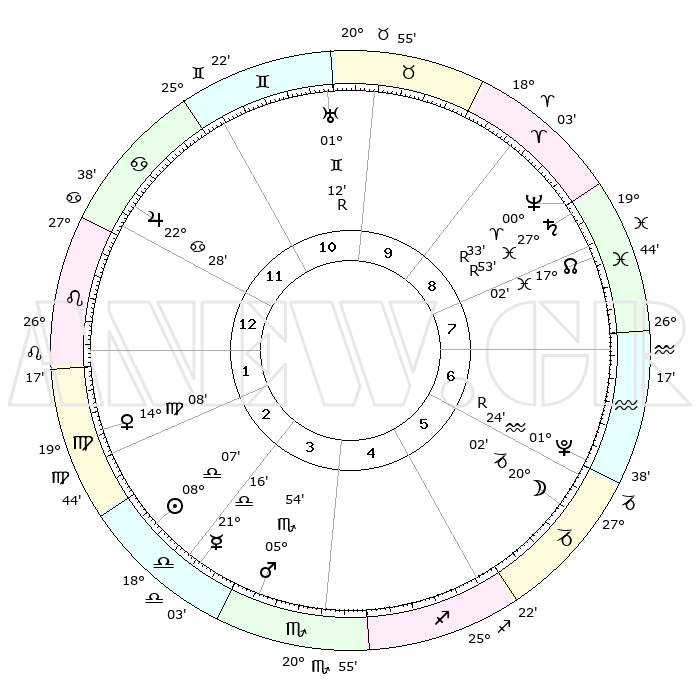 | ΘΕΣΕΙΣ ΠΛΑΝΗΤΩΝ ΑΣΤΡΟΛΟΓΙΚΟΥ ΧΑΡΤΗ ΤΗΣ ΣΤΙΓΜΗΣ ΑΥΤΗΣ | | Πλανήτης | Ζώδιο | Μοίρες | Δεκαήμ. | Σε οίκο | Απόκλιση | | Ακμές των οίκων | Ηλιος | Ζυγός | 08°02' | Πρώτο | 3 | 03 S 11 | | 1ος | 29°53' | Καρκίνος | Σελήνη | Αιγόκερως | 18°54' | Δεύτερο | 6 | 26 S 35 | | 2ος | 20°55' | Λέων | Ερμής | Ζυγός | 21°07' | Τρίτο | 4 | 08 S 20 | | 3ος | 15°57' | Παρθένος | Αφροδίτη | Παρθένος | 14°01' | Δεύτερο | 2 | 07 N 28 | | 4ος | 16°58' | Ζυγός | Αρης | Σκορπιός | 05°50' | Πρώτο | 4 | 13 S 32 | | 5ος | 23°01' | Σκορπιός | Δίας | Καρκίνος | 22°28' | Τρίτο | 12 | 21 N 35 | | 6ος | 28°45' | Τοξότης | Κρόνος | Ιχθείς | 27°54'R | Τρίτο | 9 | 03 S 09 | | 7ος | 29°53' | Αιγόκερως | Ουρανός | Δίδυμοι | 01°12'R | Πρώτο | 11 | 20 N 11 | | 8ος | 20°55' | Υδροχόος | Ποσειδώνας | Κριός | 00°33'R | Πρώτο | 9 | 01 S 03 | | 9ος | 15°57' | Ιχθείς | Πλούτωνας | Υδροχόος | 01°24'R | Πρώτο | 7 | 23 S 32 | | 10ος | 16°58' | Κριός | Β. Δεσμός | Ιχθείς | 17°03' | Δεύτερο | 9 | 05 S 07 | | 11ος | 23°01' | Ταύρος | Ωροσκόπος | Καρκίνος | 29°53' | Τρίτο | | | 12ος | 28°45' | Δίδυμοι | Μεσουράνημα | Κριός | 16°58' | Δεύτερο | | | |