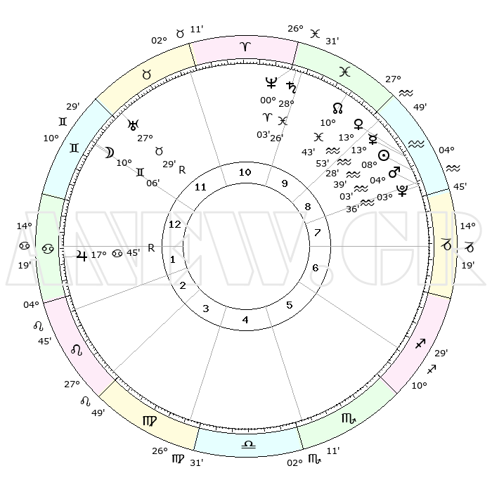 | | ΘΕΣΕΙΣ ΠΛΑΝΗΤΩΝ ΑΣΤΡΟΛΟΓΙΚΟΥ ΧΑΡΤΗ ΤΗΣ ΣΤΙΓΜΗΣ ΑΥΤΗΣ | | | | Πλανήτης | Ζώδιο | Μοίρες | Δεκαήμ. | Σε οίκο | Απόκλιση | | Ακμές των οίκων | | Ηλιος | Υδροχόος | 08°34' | Πρώτο | 9 | 18 S 07 | | 1ος | 20°58' | Δίδυμοι | | Σελήνη | Δίδυμοι | 09°03' | Πρώτο | 12 | 26 N 57 | | 2ος | 12°30' | Καρκίνος | | Ερμής | Υδροχόος | 13°20' | Δεύτερο | 9 | 18 S 46 | | 3ος | 03°52' | Λέων | | Αφροδίτη | Υδροχόος | 13°48' | Δεύτερο | 9 | 17 S 56 | | 4ος | 28°50' | Λέων | | Αρης | Υδροχόος | 03°60' | Πρώτο | 9 | 20 S 15 | | 5ος | 01°12' | Ζυγός | | Δίας | Καρκίνος | 17°45'R | Δεύτερο | 2 | 22 N 33 | | 6ος | 11°30' | Σκορπιός | | Κρόνος | Ιχθείς | 28°25' | Τρίτο | 10 | 02 S 38 | | 7ος | 20°58' | Τοξότης | | Ουρανός | Ταύρος | 27°29'R | Τρίτο | 12 | 19 N 24 | | 8ος | 12°30' | Αιγόκερως | | Ποσειδώνας | Κριός | 00°03' | Πρώτο | 10 | 01 S 11 | | 9ος | 03°52' | Υδροχόος | | Πλούτωνας | Υδροχόος | 03°35' | Πρώτο | 8 | 23 S 03 | | 10ος | 28°50' | Υδροχόος | | Β. Δεσμός | Ιχθείς | 10°43' | Δεύτερο | 10 | 07 S 33 | | 11ος | 01°12' | Κριός | | Ωροσκόπος | Δίδυμοι | 20°58' | Τρίτο | | | 12ος | 11°30' | Ταύρος | | Μεσουράνημα | Υδροχόος | 28°50' | Τρίτο | | | |