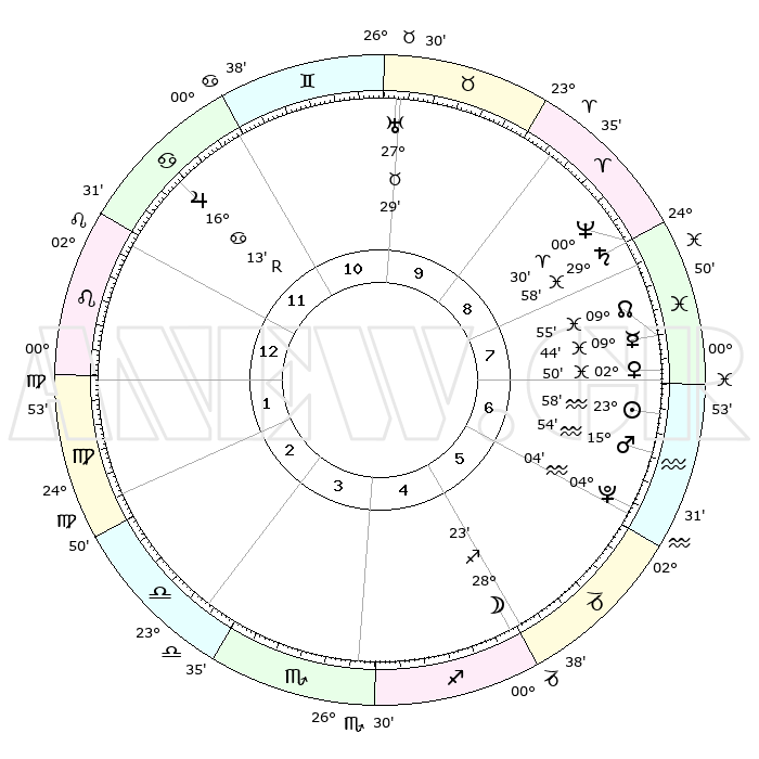 | | ΘΕΣΕΙΣ ΠΛΑΝΗΤΩΝ ΑΣΤΡΟΛΟΓΙΚΟΥ ΧΑΡΤΗ ΤΗΣ ΣΤΙΓΜΗΣ ΑΥΤΗΣ | | | | Πλανήτης | Ζώδιο | Μοίρες | Δεκαήμ. | Σε οίκο | Απόκλιση | | Ακμές των οίκων | | Ηλιος | Υδροχόος | 23°54' | Τρίτο | 7 | 13 S 33 | | 1ος | 09°33' | Λέων | | Σελήνη | Τοξότης | 27°30' | Τρίτο | 5 | 28 S 24 | | 2ος | 01°20' | Παρθένος | | Ερμής | Ιχθείς | 09°37' | Πρώτο | 8 | 08 S 22 | | 3ος | 27°40' | Παρθένος | | Αφροδίτη | Ιχθείς | 02°45' | Πρώτο | 8 | 11 S 51 | | 4ος | 29°42' | Ζυγός | | Αρης | Υδροχόος | 15°51' | Δεύτερο | 7 | 17 S 06 | | 5ος | 05°20' | Τοξότης | | Δίας | Καρκίνος | 16°13'R | Δεύτερο | 12 | 22 N 46 | | 6ος | 09°33' | Αιγόκερως | | Κρόνος | Ιχθείς | 29°58' | Τρίτο | 9 | 01 S 59 | | 7ος | 09°33' | Υδροχόος | | Ουρανός | Ταύρος | 27°29' | Τρίτο | 10 | 19 N 25 | | 8ος | 01°20' | Ιχθείς | | Ποσειδώνας | Κριός | 00°29' | Πρώτο | 9 | 01 S 00 | | 9ος | 27°40' | Ιχθείς | | Πλούτωνας | Υδροχόος | 04°04' | Πρώτο | 6 | 22 S 57 | | 10ος | 29°42' | Κριός | | Β. Δεσμός | Ιχθείς | 09°55' | Πρώτο | 8 | 07 S 51 | | 11ος | 05°20' | Δίδυμοι | | Ωροσκόπος | Λέων | 09°33' | Πρώτο | | | 12ος | 09°33' | Καρκίνος | | Μεσουράνημα | Κριός | 29°42' | Τρίτο | | | |