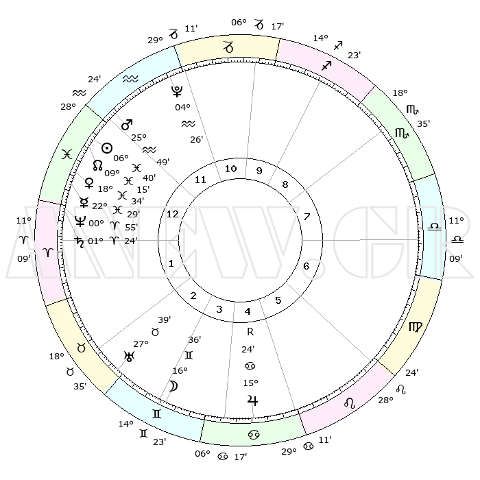 | | ΘΕΣΕΙΣ ΠΛΑΝΗΤΩΝ ΑΣΤΡΟΛΟΓΙΚΟΥ ΧΑΡΤΗ ΤΗΣ ΣΤΙΓΜΗΣ ΑΥΤΗΣ | | | | Πλανήτης | Ζώδιο | Μοίρες | Δεκαήμ. | Σε οίκο | Απόκλιση | | Ακμές των οίκων | | Ηλιος | Ιχθείς | 06°37' | Πρώτο | 12 | 09 S 05 | | 1ος | 10°19' | Ιχθείς | | Σελήνη | Δίδυμοι | 15°51' | Δεύτερο | 3 | 27 N 54 | | 2ος | 24°33' | Κριός | | Ερμής | Ιχθείς | 22°28' | Τρίτο | 1 | 00 S 39 | | 3ος | 25°17' | Ταύρος | | Αφροδίτη | Ιχθείς | 18°31' | Δεύτερο | 1 | 05 S 50 | | 4ος | 18°47' | Δίδυμοι | | Αρης | Υδροχόος | 25°46' | Τρίτο | 12 | 13 S 57 | | 5ος | 10°31' | Καρκίνος | | Δίας | Καρκίνος | 15°24'R | Δεύτερο | 5 | 22 N 53 | | 6ος | 05°13' | Λέων | | Κρόνος | Κριός | 01°23' | Πρώτο | 1 | 01 S 24 | | 7ος | 10°19' | Παρθένος | | Ουρανός | Ταύρος | 27°39' | Τρίτο | 3 | 19 N 27 | | 8ος | 24°33' | Ζυγός | | Ποσειδώνας | Κριός | 00°55' | Πρώτο | 1 | 00 S 50 | | 9ος | 25°17' | Σκορπιός | | Πλούτωνας | Υδροχόος | 04°26' | Πρώτο | 11 | 22 S 53 | | 10ος | 18°47' | Τοξότης | | Β. Δεσμός | Ιχθείς | 09°15' | Πρώτο | 12 | 08 S 06 | | 11ος | 10°31' | Αιγόκερως | | Ωροσκόπος | Ιχθείς | 10°19' | Δεύτερο | | | 12ος | 05°13' | Υδροχόος | | Μεσουράνημα | Τοξότης | 18°47' | Δεύτερο | | | |