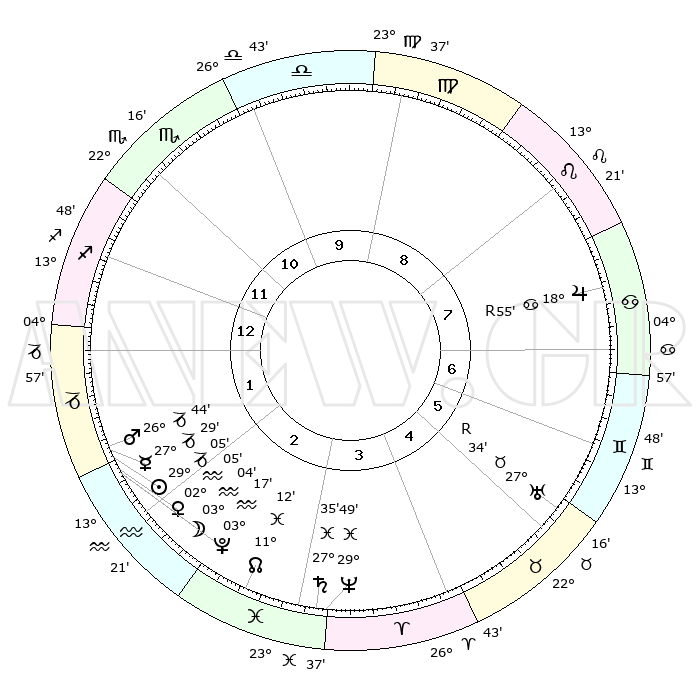 | | ΘΕΣΕΙΣ ΠΛΑΝΗΤΩΝ ΑΣΤΡΟΛΟΓΙΚΟΥ ΧΑΡΤΗ ΤΗΣ ΣΤΙΓΜΗΣ ΑΥΤΗΣ | | | | Πλανήτης | Ζώδιο | Μοίρες | Δεκαήμ. | Σε οίκο | Απόκλιση | | Ακμές των οίκων | | Ηλιος | Αιγόκερως | 28°57' | Τρίτο | 3 | 20 S 22 | | 1ος | 23°05' | Σκορπιός | | Σελήνη | Υδροχόος | 01°21' | Πρώτο | 3 | 22 S 58 | | 2ος | 23°21' | Τοξότης | | Ερμής | Αιγόκερως | 27°15' | Τρίτο | 2 | 22 S 39 | | 3ος | 27°58' | Αιγόκερως | | Αφροδίτη | Υδροχόος | 01°54' | Πρώτο | 3 | 20 S 48 | | 4ος | 03°45' | Ιχθείς | | Αρης | Αιγόκερως | 26°37' | Τρίτο | 2 | 21 S 48 | | 5ος | 05°32' | Κριός | | Δίας | Καρκίνος | 18°57'R | Δεύτερο | 8 | 22 N 22 | | 6ος | 01°32' | Ταύρος | | Κρόνος | Ιχθείς | 27°34' | Τρίτο | 4 | 02 S 59 | | 7ος | 23°05' | Ταύρος | | Ουρανός | Ταύρος | 27°34'R | Τρίτο | 7 | 19 N 25 | | 8ος | 23°21' | Δίδυμοι | | Ποσειδώνας | Ιχθείς | 29°49' | Τρίτο | 4 | 01 S 17 | | 9ος | 27°58' | Καρκίνος | | Πλούτωνας | Υδροχόος | 03°17' | Πρώτο | 3 | 23 S 06 | | 10ος | 03°45' | Παρθένος | | Β. Δεσμός | Ιχθείς | 11°13' | Δεύτερο | 4 | 07 S 21 | | 11ος | 05°32' | Ζυγός | | Ωροσκόπος | Σκορπιός | 23°05' | Τρίτο | | | 12ος | 01°32' | Σκορπιός | | Μεσουράνημα | Παρθένος | 03°45' | Πρώτο | | | |