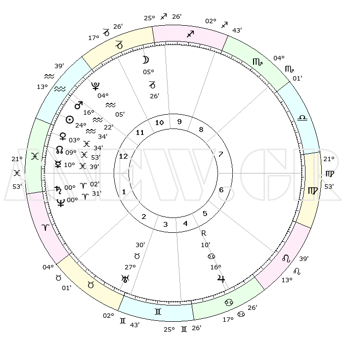 | | ΘΕΣΕΙΣ ΠΛΑΝΗΤΩΝ ΑΣΤΡΟΛΟΓΙΚΟΥ ΧΑΡΤΗ ΤΗΣ ΣΤΙΓΜΗΣ ΑΥΤΗΣ | | | | Πλανήτης | Ζώδιο | Μοίρες | Δεκαήμ. | Σε οίκο | Απόκλιση | | Ακμές των οίκων | | Ηλιος | Υδροχόος | 24°29' | Τρίτο | 1 | 13 S 22 | | 1ος | 07°08' | Υδροχόος | | Σελήνη | Αιγόκερως | 04°24' | Πρώτο | 11 | 28 S 07 | | 2ος | 22°13' | Ιχθείς | | Ερμής | Ιχθείς | 10°31' | Δεύτερο | 1 | 07 S 56 | | 3ος | 29°27' | Κριός | | Αφροδίτη | Ιχθείς | 03°28' | Πρώτο | 1 | 11 S 36 | | 4ος | 26°44' | Ταύρος | | Αρης | Υδροχόος | 16°18' | Δεύτερο | 1 | 16 S 58 | | 5ος | 19°03' | Δίδυμοι | | Δίας | Καρκίνος | 16°10'R | Δεύτερο | 6 | 22 N 47 | | 6ος | 10°47' | Καρκίνος | | Κρόνος | Κριός | 00°02'R | Πρώτο | 2 | 01 S 58 | | 7ος | 07°08' | Λέων | | Ουρανός | Ταύρος | 27°30' | Τρίτο | 4 | 19 N 25 | | 8ος | 22°13' | Παρθένος | | Ποσειδώνας | Κριός | 00°31' | Πρώτο | 2 | 01 S 00 | | 9ος | 29°27' | Ζυγός | | Πλούτωνας | Υδροχόος | 04°05' | Πρώτο | 12 | 22 S 57 | | 10ος | 26°44' | Σκορπιός | | Β. Δεσμός | Ιχθείς | 09°53' | Πρώτο | 1 | 07 S 52 | | 11ος | 19°03' | Τοξότης | | Ωροσκόπος | Υδροχόος | 07°08' | Πρώτο | | | 12ος | 10°47' | Αιγόκερως | | Μεσουράνημα | Σκορπιός | 26°44' | Τρίτο | | | |