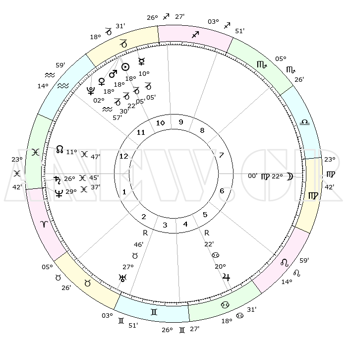 | | ΘΕΣΕΙΣ ΠΛΑΝΗΤΩΝ ΑΣΤΡΟΛΟΓΙΚΟΥ ΧΑΡΤΗ ΤΗΣ ΣΤΙΓΜΗΣ ΑΥΤΗΣ | | | | Πλανήτης | Ζώδιο | Μοίρες | Δεκαήμ. | Σε οίκο | Απόκλιση | | Ακμές των οίκων | | Ηλιος | Αιγόκερως | 16°57' | Δεύτερο | 12 | 22 S 21 | | 1ος | 23°39' | Αιγόκερως | | Σελήνη | Παρθένος | 07°25' | Πρώτο | 8 | 09 N 02 | | 2ος | 06°34' | Ιχθείς | | Ερμής | Αιγόκερως | 08°19' | Πρώτο | 12 | 24 S 22 | | 3ος | 15°54' | Κριός | | Αφροδίτη | Αιγόκερως | 17°05' | Δεύτερο | 12 | 23 S 04 | | 4ος | 15°30' | Ταύρος | | Αρης | Αιγόκερως | 17°30' | Δεύτερο | 12 | 23 S 12 | | 5ος | 08°47' | Δίδυμοι | | Δίας | Καρκίνος | 20°31'R | Τρίτο | 6 | 22 N 07 | | 6ος | 00°03' | Καρκίνος | | Κρόνος | Ιχθείς | 26°41' | Τρίτο | 2 | 03 S 23 | | 7ος | 23°39' | Καρκίνος | | Ουρανός | Ταύρος | 27°47'R | Τρίτο | 4 | 19 N 28 | | 8ος | 06°34' | Παρθένος | | Ποσειδώνας | Ιχθείς | 29°36' | Τρίτο | 2 | 01 S 23 | | 9ος | 15°54' | Ζυγός | | Πλούτωνας | Υδροχόος | 02°55' | Πρώτο | 1 | 23 S 11 | | 10ος | 15°30' | Σκορπιός | | Β. Δεσμός | Ιχθείς | 11°50' | Δεύτερο | 2 | 07 S 07 | | 11ος | 08°47' | Τοξότης | | Ωροσκόπος | Αιγόκερως | 23°39' | Τρίτο | | | 12ος | 00°03' | Αιγόκερως | | Μεσουράνημα | Σκορπιός | 15°30' | Δεύτερο | | | |