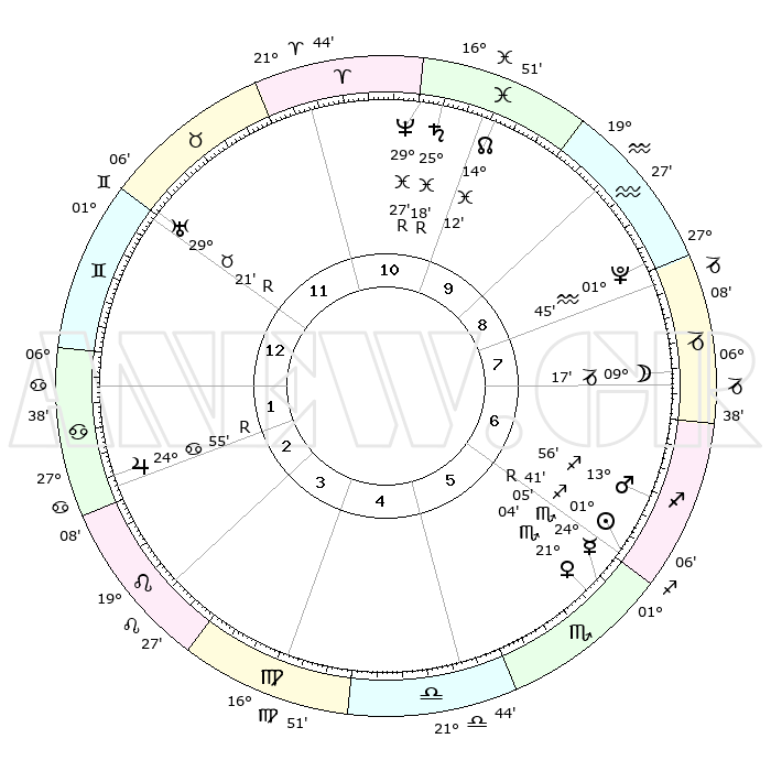 | | ΘΕΣΕΙΣ ΠΛΑΝΗΤΩΝ ΑΣΤΡΟΛΟΓΙΚΟΥ ΧΑΡΤΗ ΤΗΣ ΣΤΙΓΜΗΣ ΑΥΤΗΣ | | | | Πλανήτης | Ζώδιο | Μοίρες | Δεκαήμ. | Σε οίκο | Απόκλιση | | Ακμές των οίκων | | Ηλιος | Τοξότης | 01°37' | Πρώτο | 6 | 20 S 29 | | 1ος | 17°36' | Δίδυμοι | | Σελήνη | Αιγόκερως | 08°36' | Πρώτο | 7 | 27 S 43 | | 2ος | 09°31' | Καρκίνος | | Ερμής | Σκορπιός | 24°09'R | Τρίτο | 6 | 17 S 18 | | 3ος | 00°48' | Λέων | | Αφροδίτη | Σκορπιός | 20°60' | Τρίτο | 6 | 17 S 05 | | 4ος | 25°19' | Λέων | | Αρης | Τοξότης | 13°53' | Δεύτερο | 6 | 23 S 03 | | 5ος | 27°03' | Παρθένος | | Δίας | Καρκίνος | 24°55'R | Τρίτο | 2 | 21 N 17 | | 6ος | 07°17' | Σκορπιός | | Κρόνος | Ιχθείς | 25°18'R | Τρίτο | 10 | 04 S 04 | | 7ος | 17°36' | Τοξότης | | Ουρανός | Ταύρος | 29°21'R | Τρίτο | 12 | 19 N 48 | | 8ος | 09°31' | Αιγόκερως | | Ποσειδώνας | Ιχθείς | 29°27'R | Τρίτο | 11 | 01 S 28 | | 9ος | 00°48' | Υδροχόος | | Πλούτωνας | Υδροχόος | 01°45' | Πρώτο | 9 | 23 S 26 | | 10ος | 25°19' | Υδροχόος | | Β. Δεσμός | Ιχθείς | 14°12' | Δεύτερο | 10 | 06 S 13 | | 11ος | 27°03' | Ιχθείς | | Ωροσκόπος | Δίδυμοι | 17°36' | Δεύτερο | | | 12ος | 07°17' | Ταύρος | | Μεσουράνημα | Υδροχόος | 25°19' | Τρίτο | | | |