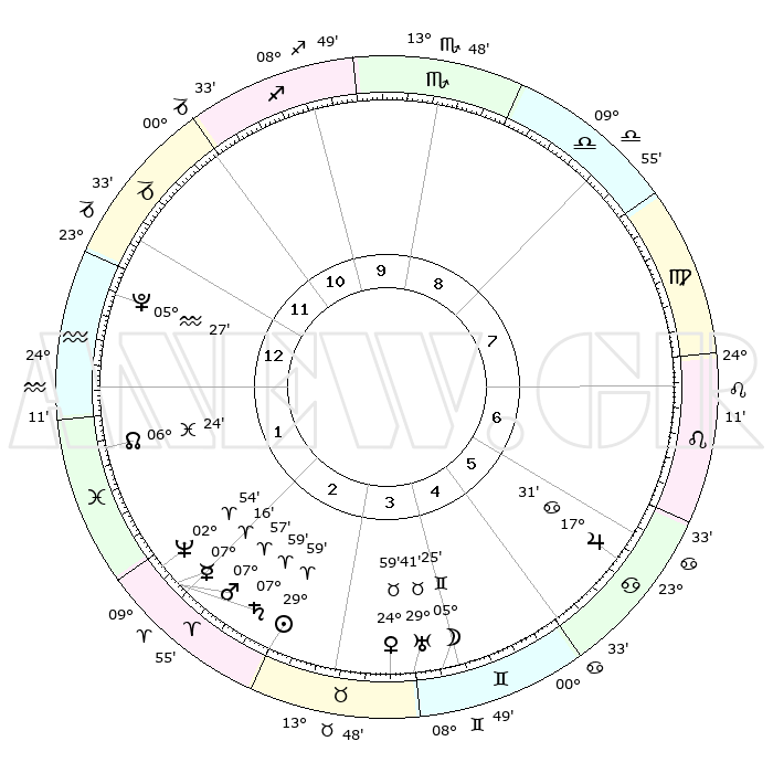 | | ΘΕΣΕΙΣ ΠΛΑΝΗΤΩΝ ΑΣΤΡΟΛΟΓΙΚΟΥ ΧΑΡΤΗ ΤΗΣ ΣΤΙΓΜΗΣ ΑΥΤΗΣ | | | | Πλανήτης | Ζώδιο | Μοίρες | Δεκαήμ. | Σε οίκο | Απόκλιση | | Ακμές των οίκων | | Ηλιος | Κριός | 29°56' | Τρίτο | 3 | 11 N 27 | | 1ος | 27°20' | Αιγόκερως | | Σελήνη | Δίδυμοι | 04°33' | Πρώτο | 4 | 26 N 03 | | 2ος | 10°58' | Ιχθείς | | Ερμής | Κριός | 07°11' | Πρώτο | 2 | 00 N 26 | | 3ος | 19°49' | Κριός | | Αφροδίτη | Ταύρος | 24°55' | Τρίτο | 4 | 19 N 23 | | 4ος | 18°45' | Ταύρος | | Αρης | Κριός | 07°54' | Πρώτο | 2 | 02 N 15 | | 5ος | 11°43' | Δίδυμοι | | Δίας | Καρκίνος | 17°31' | Δεύτερο | 6 | 22 N 40 | | 6ος | 03°03' | Καρκίνος | | Κρόνος | Κριός | 07°59' | Πρώτο | 2 | 01 N 11 | | 7ος | 27°20' | Καρκίνος | | Ουρανός | Ταύρος | 29°41' | Τρίτο | 4 | 19 N 55 | | 8ος | 10°58' | Παρθένος | | Ποσειδώνας | Κριός | 02°54' | Πρώτο | 2 | 00 S 03 | | 9ος | 19°49' | Ζυγός | | Πλούτωνας | Υδροχόος | 05°27' | Πρώτο | 1 | 22 S 48 | | 10ος | 18°45' | Σκορπιός | | Β. Δεσμός | Ιχθείς | 06°24' | Πρώτο | 1 | 09 S 10 | | 11ος | 11°43' | Τοξότης | | Ωροσκόπος | Αιγόκερως | 27°20' | Τρίτο | | | 12ος | 03°03' | Αιγόκερως | | Μεσουράνημα | Σκορπιός | 18°45' | Δεύτερο | | | |