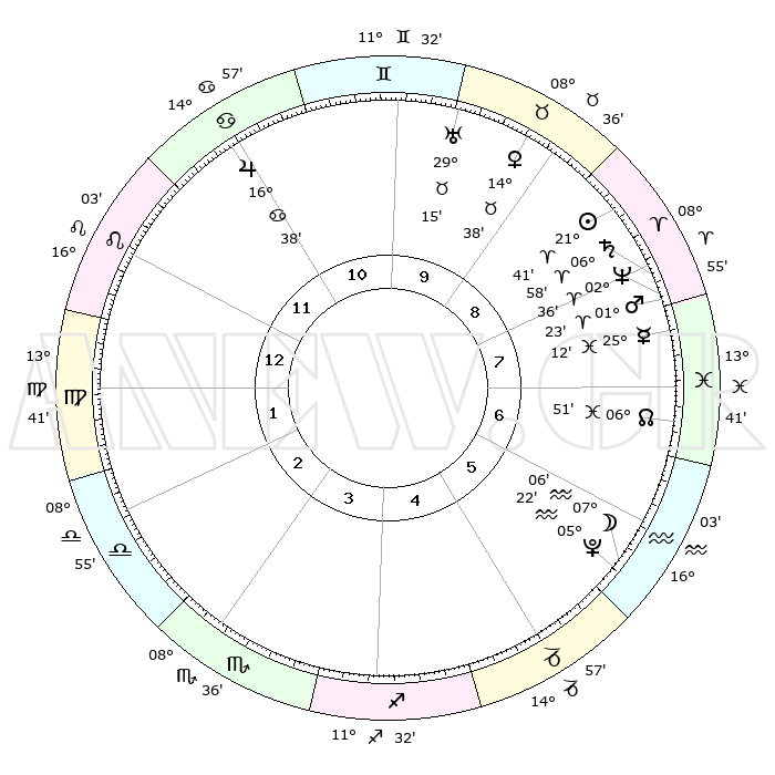 | | ΘΕΣΕΙΣ ΠΛΑΝΗΤΩΝ ΑΣΤΡΟΛΟΓΙΚΟΥ ΧΑΡΤΗ ΤΗΣ ΣΤΙΓΜΗΣ ΑΥΤΗΣ | | | | Πλανήτης | Ζώδιο | Μοίρες | Δεκαήμ. | Σε οίκο | Απόκλιση | | Ακμές των οίκων | | Ηλιος | Κριός | 21°38' | Τρίτο | 9 | 08 N 26 | | 1ος | 25°51' | Λέων | | Σελήνη | Υδροχόος | 06°21' | Πρώτο | 6 | 21 S 19 | | 2ος | 19°16' | Παρθένος | | Ερμής | Ιχθείς | 25°07' | Τρίτο | 8 | 04 S 11 | | 3ος | 17°32' | Ζυγός | | Αφροδίτη | Ταύρος | 14°34' | Δεύτερο | 9 | 16 N 13 | | 4ος | 20°23' | Σκορπιός | | Αρης | Κριός | 01°20' | Πρώτο | 8 | 00 S 23 | | 5ος | 24°52' | Τοξότης | | Δίας | Καρκίνος | 16°37' | Δεύτερο | 11 | 22 N 46 | | 6ος | 27°10' | Αιγόκερως | | Κρόνος | Κριός | 06°58' | Πρώτο | 8 | 00 N 48 | | 7ος | 25°51' | Υδροχόος | | Ουρανός | Ταύρος | 29°15' | Τρίτο | 10 | 19 N 49 | | 8ος | 19°16' | Ιχθείς | | Ποσειδώνας | Κριός | 02°36' | Πρώτο | 8 | 00 S 10 | | 9ος | 17°32' | Κριός | | Πλούτωνας | Υδροχόος | 05°22' | Πρώτο | 6 | 22 S 47 | | 10ος | 20°23' | Ταύρος | | Β. Δεσμός | Ιχθείς | 06°51' | Πρώτο | 7 | 09 S 00 | | 11ος | 24°52' | Δίδυμοι | | Ωροσκόπος | Λέων | 25°51' | Τρίτο | | | 12ος | 27°10' | Καρκίνος | | Μεσουράνημα | Ταύρος | 20°23' | Τρίτο | | | |