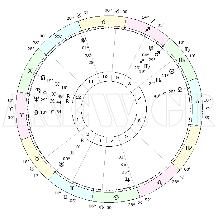 | | ΘΕΣΕΙΣ ΠΛΑΝΗΤΩΝ ΑΣΤΡΟΛΟΓΙΚΟΥ ΧΑΡΤΗ ΤΗΣ ΣΤΙΓΜΗΣ ΑΥΤΗΣ | | | | Πλανήτης | Ζώδιο | Μοίρες | Δεκαήμ. | Σε οίκο | Απόκλιση | | Ακμές των οίκων | | Ηλιος | Σκορπιός | 11°07' | Δεύτερο | 11 | 15 S 09 | | 1ος | 05°07' | Τοξότης | | Σελήνη | Κριός | 09°14' | Πρώτο | 4 | 05 N 26 | | 2ος | 07°01' | Αιγόκερως | | Ερμής | Τοξότης | 04°16' | Πρώτο | 12 | 23 S 49 | | 3ος | 13°34' | Υδροχόος | | Αφροδίτη | Ζυγός | 25°26' | Τρίτο | 11 | 08 S 29 | | 4ος | 19°40' | Ιχθείς | | Αρης | Σκορπιός | 29°07' | Τρίτο | 12 | 20 S 22 | | 5ος | 20°01' | Κριός | | Δίας | Καρκίνος | 25°02' | Τρίτο | 8 | 21 N 12 | | 6ος | 14°23' | Ταύρος | | Κρόνος | Ιχθείς | 25°49'R | Τρίτο | 4 | 03 S 55 | | 7ος | 05°07' | Δίδυμοι | | Ουρανός | Δίδυμοι | 00°11'R | Πρώτο | 6 | 19 N 59 | | 8ος | 07°01' | Καρκίνος | | Ποσειδώνας | Ιχθείς | 29°45'R | Τρίτο | 4 | 01 S 21 | | 9ος | 13°34' | Λέων | | Πλούτωνας | Υδροχόος | 01°28' | Πρώτο | 2 | 23 S 30 | | 10ος | 19°40' | Παρθένος | | Β. Δεσμός | Ιχθείς | 15°17' | Δεύτερο | 3 | 05 S 48 | | 11ος | 20°01' | Ζυγός | | Ωροσκόπος | Τοξότης | 05°07' | Πρώτο | | | 12ος | 14°23' | Σκορπιός | | Μεσουράνημα | Παρθένος | 19°40' | Δεύτερο | | | |