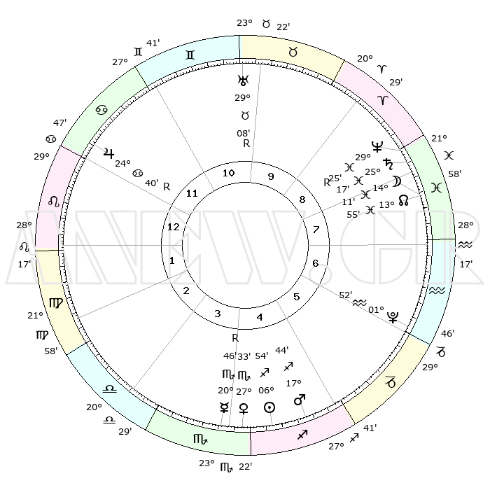 | | ΘΕΣΕΙΣ ΠΛΑΝΗΤΩΝ ΑΣΤΡΟΛΟΓΙΚΟΥ ΧΑΡΤΗ ΤΗΣ ΣΤΙΓΜΗΣ ΑΥΤΗΣ | | | | Πλανήτης | Ζώδιο | Μοίρες | Δεκαήμ. | Σε οίκο | Απόκλιση | | Ακμές των οίκων | | Ηλιος | Τοξότης | 06°53' | Πρώτο | 4 | 21 S 27 | | 1ος | 22°15' | Λέων | | Σελήνη | Ιχθείς | 13°54' | Δεύτερο | 7 | 06 S 22 | | 2ος | 15°17' | Παρθένος | | Ερμής | Σκορπιός | 20°47'R | Τρίτο | 4 | 15 S 33 | | 3ος | 13°11' | Ζυγός | | Αφροδίτη | Σκορπιός | 27°32' | Τρίτο | 4 | 18 S 51 | | 4ος | 15°56' | Σκορπιός | | Αρης | Τοξότης | 17°43' | Δεύτερο | 4 | 23 S 31 | | 5ος | 20°41' | Τοξότης | | Δίας | Καρκίνος | 24°40'R | Τρίτο | 12 | 21 N 20 | | 6ος | 23°20' | Αιγόκερως | | Κρόνος | Ιχθείς | 25°17' | Τρίτο | 8 | 04 S 03 | | 7ος | 22°15' | Υδροχόος | | Ουρανός | Ταύρος | 29°08'R | Τρίτο | 10 | 19 N 45 | | 8ος | 15°17' | Ιχθείς | | Ποσειδώνας | Ιχθείς | 29°25'R | Τρίτο | 8 | 01 S 29 | | 9ος | 13°11' | Κριός | | Πλούτωνας | Υδροχόος | 01°52' | Πρώτο | 6 | 23 S 25 | | 10ος | 15°56' | Ταύρος | | Β. Δεσμός | Ιχθείς | 13°55' | Δεύτερο | 7 | 06 S 19 | | 11ος | 20°40' | Δίδυμοι | | Ωροσκόπος | Λέων | 22°15' | Τρίτο | | | 12ος | 23°20' | Καρκίνος | | Μεσουράνημα | Ταύρος | 15°56' | Δεύτερο | | | |