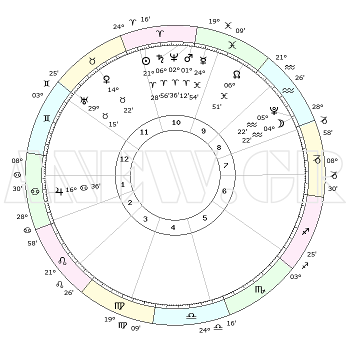 | | ΘΕΣΕΙΣ ΠΛΑΝΗΤΩΝ ΑΣΤΡΟΛΟΓΙΚΟΥ ΧΑΡΤΗ ΤΗΣ ΣΤΙΓΜΗΣ ΑΥΤΗΣ | | | | Πλανήτης | Ζώδιο | Μοίρες | Δεκαήμ. | Σε οίκο | Απόκλιση | | Ακμές των οίκων | | Ηλιος | Κριός | 21°24' | Τρίτο | 11 | 08 N 21 | | 1ος | 12°34' | Δίδυμοι | | Σελήνη | Υδροχόος | 03°26' | Πρώτο | 9 | 22 S 15 | | 2ος | 05°10' | Καρκίνος | | Ερμής | Ιχθείς | 24°49' | Τρίτο | 11 | 04 S 17 | | 3ος | 26°23' | Καρκίνος | | Αφροδίτη | Ταύρος | 14°16' | Δεύτερο | 12 | 16 N 07 | | 4ος | 20°18' | Λέων | | Αρης | Κριός | 01°09' | Πρώτο | 11 | 00 S 28 | | 5ος | 21°04' | Παρθένος | | Δίας | Καρκίνος | 16°36' | Δεύτερο | 2 | 22 N 47 | | 6ος | 01°02' | Σκορπιός | | Κρόνος | Κριός | 06°56' | Πρώτο | 11 | 00 N 47 | | 7ος | 12°34' | Τοξότης | | Ουρανός | Ταύρος | 29°14' | Τρίτο | 12 | 19 N 49 | | 8ος | 05°10' | Αιγόκερως | | Ποσειδώνας | Κριός | 02°35' | Πρώτο | 11 | 00 S 10 | | 9ος | 26°23' | Αιγόκερως | | Πλούτωνας | Υδροχόος | 05°22' | Πρώτο | 9 | 22 S 47 | | 10ος | 20°18' | Υδροχόος | | Β. Δεσμός | Ιχθείς | 06°52' | Πρώτο | 10 | 08 S 59 | | 11ος | 21°04' | Ιχθείς | | Ωροσκόπος | Δίδυμοι | 12°34' | Δεύτερο | | | 12ος | 01°02' | Ταύρος | | Μεσουράνημα | Υδροχόος | 20°18' | Τρίτο | | | |