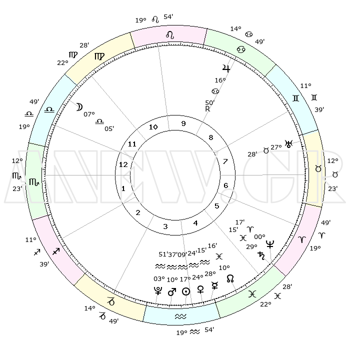 | | ΘΕΣΕΙΣ ΠΛΑΝΗΤΩΝ ΑΣΤΡΟΛΟΓΙΚΟΥ ΧΑΡΤΗ ΤΗΣ ΣΤΙΓΜΗΣ ΑΥΤΗΣ | | | | Πλανήτης | Ζώδιο | Μοίρες | Δεκαήμ. | Σε οίκο | Απόκλιση | | Ακμές των οίκων | | Ηλιος | Υδροχόος | 17°05' | Δεύτερο | 4 | 15 S 43 | | 1ος | 22°48' | Ζυγός | | Σελήνη | Ζυγός | 06°14' | Πρώτο | 12 | 04 S 40 | | 2ος | 20°48' | Σκορπιός | | Ερμής | Υδροχόος | 28°08' | Τρίτο | 4 | 13 S 30 | | 3ος | 22°15' | Τοξότης | | Αφροδίτη | Υδροχόος | 24°19' | Τρίτο | 4 | 14 S 45 | | 4ος | 25°60' | Αιγόκερως | | Αρης | Υδροχόος | 10°34' | Δεύτερο | 4 | 18 S 36 | | 5ος | 28°57' | Υδροχόος | | Δίας | Καρκίνος | 16°50'R | Δεύτερο | 9 | 22 N 41 | | 6ος | 28°13' | Ιχθείς | | Κρόνος | Ιχθείς | 29°15' | Τρίτο | 6 | 02 S 17 | | 7ος | 22°48' | Κριός | | Ουρανός | Ταύρος | 27°28' | Τρίτο | 8 | 19 N 24 | | 8ος | 20°48' | Ταύρος | | Ποσειδώνας | Κριός | 00°17' | Πρώτο | 6 | 01 S 06 | | 9ος | 22°15' | Δίδυμοι | | Πλούτωνας | Υδροχόος | 03°51' | Πρώτο | 4 | 23 S 00 | | 10ος | 25°60' | Καρκίνος | | Β. Δεσμός | Ιχθείς | 10°16' | Δεύτερο | 5 | 07 S 43 | | 11ος | 28°57' | Λέων | | Ωροσκόπος | Ζυγός | 22°48' | Τρίτο | | | 12ος | 28°13' | Παρθένος | | Μεσουράνημα | Καρκίνος | 25°60' | Τρίτο | | | |