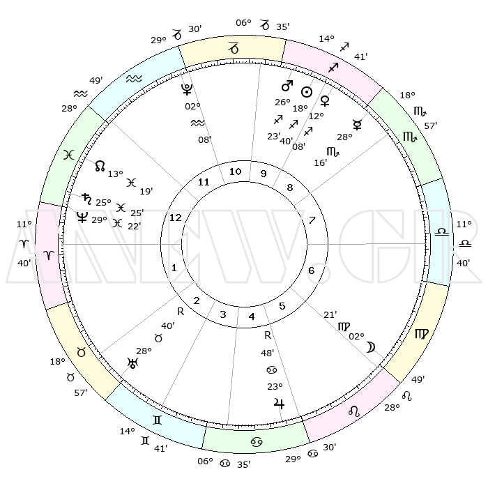 | | ΘΕΣΕΙΣ ΠΛΑΝΗΤΩΝ ΑΣΤΡΟΛΟΓΙΚΟΥ ΧΑΡΤΗ ΤΗΣ ΣΤΙΓΜΗΣ ΑΥΤΗΣ | | | | Πλανήτης | Ζώδιο | Μοίρες | Δεκαήμ. | Σε οίκο | Απόκλιση | | Ακμές των οίκων | | Ηλιος | Τοξότης | 18°38' | Δεύτερο | 9 | 22 S 57 | | 1ος | 18°48' | Ιχθείς | | Σελήνη | Παρθένος | 01°51' | Πρώτο | 6 | 11 N 44 | | 2ος | 01°34' | Ταύρος | | Ερμής | Σκορπιός | 28°13' | Τρίτο | 8 | 17 S 44 | | 3ος | 00°47' | Δίδυμοι | | Αφροδίτη | Τοξότης | 12°05' | Δεύτερο | 9 | 21 S 54 | | 4ος | 23°41' | Δίδυμοι | | Αρης | Τοξότης | 26°21' | Τρίτο | 10 | 24 S 07 | | 5ος | 15°36' | Καρκίνος | | Δίας | Καρκίνος | 23°48'R | Τρίτο | 5 | 21 N 31 | | 6ος | 11°23' | Λέων | | Κρόνος | Ιχθείς | 25°25' | Τρίτο | 1 | 03 S 58 | | 7ος | 18°48' | Παρθένος | | Ουρανός | Ταύρος | 28°40'R | Τρίτο | 2 | 19 N 40 | | 8ος | 01°34' | Σκορπιός | | Ποσειδώνας | Ιχθείς | 29°22'R | Τρίτο | 1 | 01 S 29 | | 9ος | 00°47' | Τοξότης | | Πλούτωνας | Υδροχόος | 02°08' | Πρώτο | 11 | 23 S 21 | | 10ος | 23°41' | Τοξότης | | Β. Δεσμός | Ιχθείς | 13°19' | Δεύτερο | 12 | 06 S 33 | | 11ος | 15°36' | Αιγόκερως | | Ωροσκόπος | Ιχθείς | 18°48' | Δεύτερο | | | 12ος | 11°23' | Υδροχόος | | Μεσουράνημα | Τοξότης | 23°41' | Τρίτο | | | |
