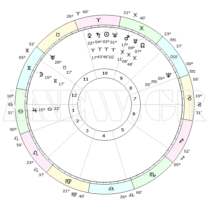 | | ΘΕΣΕΙΣ ΠΛΑΝΗΤΩΝ ΑΣΤΡΟΛΟΓΙΚΟΥ ΧΑΡΤΗ ΤΗΣ ΣΤΙΓΜΗΣ ΑΥΤΗΣ | | | | Πλανήτης | Ζώδιο | Μοίρες | Δεκαήμ. | Σε οίκο | Απόκλιση | | Ακμές των οίκων | | Ηλιος | Κριός | 03°43' | Πρώτο | 11 | 01 N 29 | | 1ος | 21°31' | Δίδυμοι | | Σελήνη | Δίδυμοι | 14°27' | Δεύτερο | 12 | 27 N 42 | | 2ος | 12°60' | Καρκίνος | | Ερμής | Ιχθείς | 09°05' | Πρώτο | 10 | 08 S 01 | | 3ος | 04°23' | Λέων | | Αφροδίτη | Κριός | 22°13' | Τρίτο | 11 | 07 N 58 | | 4ος | 29°26' | Λέων | | Αρης | Ιχθείς | 17°08' | Δεύτερο | 10 | 06 S 04 | | 5ος | 01°53' | Ζυγός | | Δίας | Καρκίνος | 15°22' | Δεύτερο | 2 | 22 N 55 | | 6ος | 12°12' | Σκορπιός | | Κρόνος | Κριός | 04°42' | Πρώτο | 11 | 00 S 05 | | 7ος | 21°31' | Τοξότης | | Ουρανός | Ταύρος | 28°27' | Τρίτο | 12 | 19 N 38 | | 8ος | 12°60' | Αιγόκερως | | Ποσειδώνας | Κριός | 01°55' | Πρώτο | 11 | 00 S 26 | | 9ος | 04°23' | Υδροχόος | | Πλούτωνας | Υδροχόος | 05°05' | Πρώτο | 9 | 22 S 48 | | 10ος | 29°26' | Υδροχόος | | Β. Δεσμός | Ιχθείς | 07°48' | Πρώτο | 10 | 08 S 38 | | 11ος | 01°53' | Κριός | | Ωροσκόπος | Δίδυμοι | 21°31' | Τρίτο | | | 12ος | 12°12' | Ταύρος | | Μεσουράνημα | Υδροχόος | 29°26' | Τρίτο | | | |