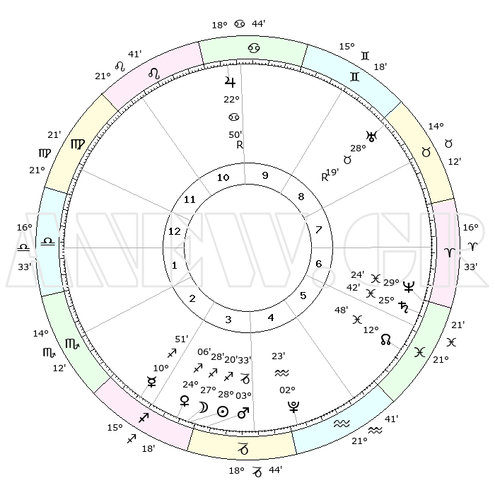 | | ΘΕΣΕΙΣ ΠΛΑΝΗΤΩΝ ΑΣΤΡΟΛΟΓΙΚΟΥ ΧΑΡΤΗ ΤΗΣ ΣΤΙΓΜΗΣ ΑΥΤΗΣ | | | | Πλανήτης | Ζώδιο | Μοίρες | Δεκαήμ. | Σε οίκο | Απόκλιση | | Ακμές των οίκων | | Ηλιος | Τοξότης | 27°06' | Τρίτο | 5 | 23 S 24 | | 1ος | 12°07' | Λέων | | Σελήνη | Τοξότης | 12°53' | Δεύτερο | 5 | 27 S 18 | | 2ος | 04°09' | Παρθένος | | Ερμής | Τοξότης | 09°07' | Πρώτο | 5 | 20 S 46 | | 3ος | 00°49' | Ζυγός | | Αφροδίτη | Τοξότης | 22°34' | Τρίτο | 5 | 23 S 13 | | 4ος | 03°03' | Σκορπιός | | Αρης | Αιγόκερως | 02°38' | Πρώτο | 5 | 24 S 12 | | 5ος | 08°31' | Τοξότης | | Δίας | Καρκίνος | 22°58'R | Τρίτο | 12 | 21 N 41 | | 6ος | 12°23' | Αιγόκερως | | Κρόνος | Ιχθείς | 25°39' | Τρίτο | 8 | 03 S 50 | | 7ος | 12°07' | Υδροχόος | | Ουρανός | Ταύρος | 28°22'R | Τρίτο | 10 | 19 N 36 | | 8ος | 04°09' | Ιχθείς | | Ποσειδώνας | Ιχθείς | 29°24' | Τρίτο | 8 | 01 S 28 | | 9ος | 00°49' | Κριός | | Πλούτωνας | Υδροχόος | 02°21' | Πρώτο | 6 | 23 S 18 | | 10ος | 03°03' | Ταύρος | | Β. Δεσμός | Ιχθείς | 12°52' | Δεύτερο | 8 | 06 S 44 | | 11ος | 08°31' | Δίδυμοι | | Ωροσκόπος | Λέων | 12°07' | Δεύτερο | | | 12ος | 12°23' | Καρκίνος | | Μεσουράνημα | Ταύρος | 03°03' | Πρώτο | | | |