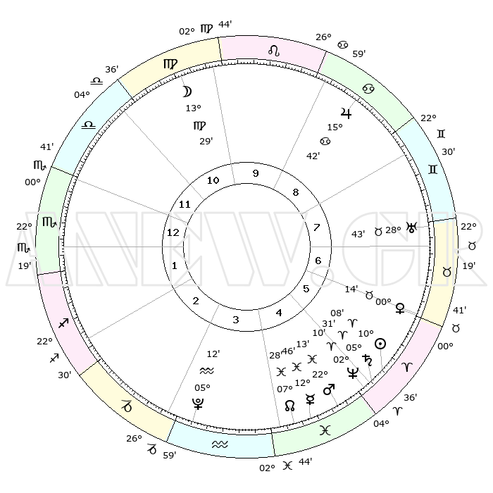 | | ΘΕΣΕΙΣ ΠΛΑΝΗΤΩΝ ΑΣΤΡΟΛΟΓΙΚΟΥ ΧΑΡΤΗ ΤΗΣ ΣΤΙΓΜΗΣ ΑΥΤΗΣ | | | | Πλανήτης | Ζώδιο | Μοίρες | Δεκαήμ. | Σε οίκο | Απόκλιση | | Ακμές των οίκων | | Ηλιος | Κριός | 10°05' | Δεύτερο | 5 | 04 N 00 | | 1ος | 06°26' | Σκορπιός | | Σελήνη | Παρθένος | 12°47' | Δεύτερο | 10 | 06 N 26 | | 2ος | 05°15' | Τοξότης | | Ερμής | Ιχθείς | 12°43' | Δεύτερο | 4 | 07 S 49 | | 3ος | 07°46' | Αιγόκερως | | Αφροδίτη | Ταύρος | 00°09' | Πρώτο | 6 | 11 N 04 | | 4ος | 12°25' | Υδροχόος | | Αρης | Ιχθείς | 22°11' | Τρίτο | 5 | 04 S 04 | | 5ος | 15°13' | Ιχθείς | | Δίας | Καρκίνος | 15°42' | Δεύτερο | 9 | 22 N 53 | | 6ος | 13°15' | Κριός | | Κρόνος | Κριός | 05°31' | Πρώτο | 5 | 00 N 14 | | 7ος | 06°26' | Ταύρος | | Ουρανός | Ταύρος | 28°43' | Τρίτο | 7 | 19 N 42 | | 8ος | 05°15' | Δίδυμοι | | Ποσειδώνας | Κριός | 02°10' | Πρώτο | 5 | 00 S 20 | | 9ος | 07°46' | Καρκίνος | | Πλούτωνας | Υδροχόος | 05°12' | Πρώτο | 3 | 22 S 47 | | 10ος | 12°25' | Λέων | | Β. Δεσμός | Ιχθείς | 07°28' | Πρώτο | 4 | 08 S 46 | | 11ος | 15°13' | Παρθένος | | Ωροσκόπος | Σκορπιός | 06°26' | Πρώτο | | | 12ος | 13°15' | Ζυγός | | Μεσουράνημα | Λέων | 12°25' | Δεύτερο | | | |