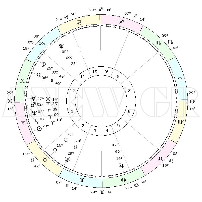 | | ΘΕΣΕΙΣ ΠΛΑΝΗΤΩΝ ΑΣΤΡΟΛΟΓΙΚΟΥ ΧΑΡΤΗ ΤΗΣ ΣΤΙΓΜΗΣ ΑΥΤΗΣ | | | | Πλανήτης | Ζώδιο | Μοίρες | Δεκαήμ. | Σε οίκο | Απόκλιση | | Ακμές των οίκων | | Ηλιος | Κριός | 23°09' | Τρίτο | 2 | 09 N 00 | | 1ος | 22°12' | Υδροχόος | | Σελήνη | Υδροχόος | 25°54' | Τρίτο | 1 | 13 S 55 | | 2ος | 07°60' | Κριός | | Ερμής | Ιχθείς | 27°09' | Τρίτο | 1 | 03 S 27 | | 3ος | 12°16' | Ταύρος | | Αφροδίτη | Ταύρος | 16°27' | Δεύτερο | 3 | 16 N 50 | | 4ος | 07°31' | Δίδυμοι | | Αρης | Κριός | 02°32' | Πρώτο | 1 | 00 N 06 | | 5ος | 29°17' | Δίδυμοι | | Δίας | Καρκίνος | 16°46' | Δεύτερο | 5 | 22 N 45 | | 6ος | 22°06' | Καρκίνος | | Κρόνος | Κριός | 07°09' | Πρώτο | 1 | 00 N 52 | | 7ος | 22°12' | Λέων | | Ουρανός | Ταύρος | 29°20' | Τρίτο | 3 | 19 N 50 | | 8ος | 07°60' | Ζυγός | | Ποσειδώνας | Κριός | 02°39' | Πρώτο | 1 | 00 S 09 | | 9ος | 12°16' | Σκορπιός | | Πλούτωνας | Υδροχόος | 05°23' | Πρώτο | 12 | 22 S 47 | | 10ος | 07°31' | Τοξότης | | Β. Δεσμός | Ιχθείς | 06°46' | Πρώτο | 1 | 09 S 02 | | 11ος | 29°17' | Τοξότης | | Ωροσκόπος | Υδροχόος | 22°12' | Τρίτο | | | 12ος | 22°06' | Αιγόκερως | | Μεσουράνημα | Τοξότης | 07°31' | Πρώτο | | | |