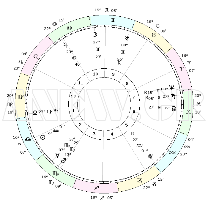 | ΘΕΣΕΙΣ ΠΛΑΝΗΤΩΝ ΑΣΤΡΟΛΟΓΙΚΟΥ ΧΑΡΤΗ ΤΗΣ ΣΤΙΓΜΗΣ ΑΥΤΗΣ | | Πλανήτης | Ζώδιο | Μοίρες | Δεκαήμ. | Σε οίκο | Απόκλιση | | Ακμές των οίκων | Ηλιος | Ζυγός | 18°53' | Δεύτερο | 3 | 07 S 24 | | 1ος | 12°39' | Λέων | Σελήνη | Δίδυμοι | 25°32' | Τρίτο | 11 | 28 N 31 | | 2ος | 04°44' | Παρθένος | Ερμής | Σκορπιός | 07°46' | Πρώτο | 4 | 15 S 25 | | 3ος | 01°28' | Ζυγός | Αφροδίτη | Παρθένος | 27°38' | Τρίτο | 2 | 02 N 18 | | 4ος | 03°44' | Σκορπιός | Αρης | Σκορπιός | 13°24' | Δεύτερο | 4 | 16 S 02 | | 5ος | 09°10' | Τοξότης | Δίας | Καρκίνος | 23°39' | Τρίτο | 12 | 21 N 24 | | 6ος | 12°58' | Αιγόκερως | Κρόνος | Ιχθείς | 27°06'R | Τρίτο | 8 | 03 S 27 | | 7ος | 12°39' | Υδροχόος | Ουρανός | Δίδυμοι | 00°57'R | Πρώτο | 10 | 20 N 08 | | 8ος | 04°44' | Ιχθείς | Ποσειδώνας | Κριός | 00°15'R | Πρώτο | 8 | 01 S 10 | | 9ος | 01°28' | Κριός | Πλούτωνας | Υδροχόος | 01°22'R | Πρώτο | 6 | 23 S 32 | | 10ος | 03°44' | Ταύρος | Β. Δεσμός | Ιχθείς | 16°28' | Δεύτερο | 8 | 05 S 21 | | 11ος | 09°10' | Δίδυμοι | Ωροσκόπος | Λέων | 12°39' | Δεύτερο | | | 12ος | 12°58' | Καρκίνος | Μεσουράνημα | Ταύρος | 03°44' | Πρώτο | | | |