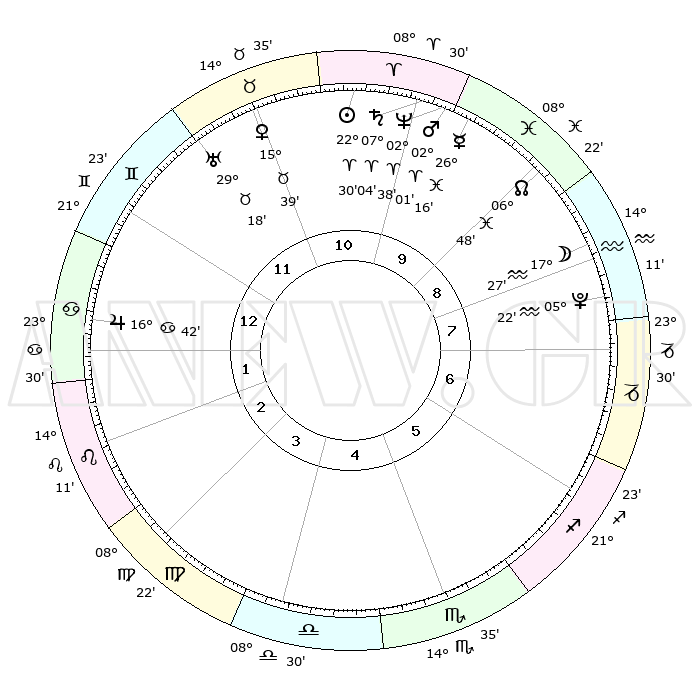 | | ΘΕΣΕΙΣ ΠΛΑΝΗΤΩΝ ΑΣΤΡΟΛΟΓΙΚΟΥ ΧΑΡΤΗ ΤΗΣ ΣΤΙΓΜΗΣ ΑΥΤΗΣ | | | | Πλανήτης | Ζώδιο | Μοίρες | Δεκαήμ. | Σε οίκο | Απόκλιση | | Ακμές των οίκων | | Ηλιος | Κριός | 22°26' | Τρίτο | 11 | 08 N 44 | | 1ος | 03°50' | Καρκίνος | | Σελήνη | Υδροχόος | 16°38' | Δεύτερο | 9 | 17 S 39 | | 2ος | 24°26' | Καρκίνος | | Ερμής | Ιχθείς | 26°11' | Τρίτο | 10 | 03 S 48 | | 3ος | 16°31' | Λέων | | Αφροδίτη | Ταύρος | 15°34' | Δεύτερο | 11 | 16 N 33 | | 4ος | 13°27' | Παρθένος | | Αρης | Κριός | 01°58' | Πρώτο | 10 | 00 S 08 | | 5ος | 17°58' | Ζυγός | | Δίας | Καρκίνος | 16°42' | Δεύτερο | 1 | 22 N 46 | | 6ος | 27°39' | Σκορπιός | | Κρόνος | Κριός | 07°04' | Πρώτο | 10 | 00 N 50 | | 7ος | 03°50' | Αιγόκερως | | Ουρανός | Ταύρος | 29°17' | Τρίτο | 12 | 19 N 50 | | 8ος | 24°26' | Αιγόκερως | | Ποσειδώνας | Κριός | 02°38' | Πρώτο | 10 | 00 S 09 | | 9ος | 16°31' | Υδροχόος | | Πλούτωνας | Υδροχόος | 05°22' | Πρώτο | 8 | 22 S 47 | | 10ος | 13°27' | Ιχθείς | | Β. Δεσμός | Ιχθείς | 06°48' | Πρώτο | 9 | 09 S 01 | | 11ος | 17°58' | Κριός | | Ωροσκόπος | Καρκίνος | 03°50' | Πρώτο | | | 12ος | 27°39' | Ταύρος | | Μεσουράνημα | Ιχθείς | 13°27' | Δεύτερο | | | |