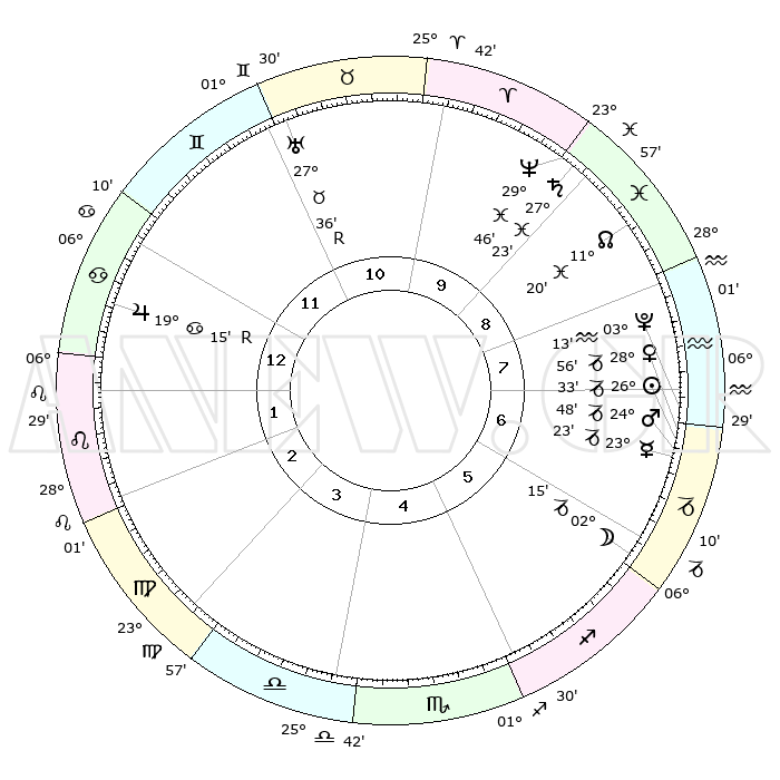 | | ΘΕΣΕΙΣ ΠΛΑΝΗΤΩΝ ΑΣΤΡΟΛΟΓΙΚΟΥ ΧΑΡΤΗ ΤΗΣ ΣΤΙΓΜΗΣ ΑΥΤΗΣ | | | | Πλανήτης | Ζώδιο | Μοίρες | Δεκαήμ. | Σε οίκο | Απόκλιση | | Ακμές των οίκων | | Ηλιος | Αιγόκερως | 26°28' | Τρίτο | 7 | 20 S 51 | | 1ος | 14°55' | Καρκίνος | | Σελήνη | Αιγόκερως | 01°22' | Πρώτο | 6 | 28 S 12 | | 2ος | 05°21' | Λέων | | Ερμής | Αιγόκερως | 23°15' | Τρίτο | 7 | 23 S 16 | | 3ος | 28°29' | Λέων | | Αφροδίτη | Αιγόκερως | 28°51' | Τρίτο | 7 | 21 S 23 | | 4ος | 27°17' | Παρθένος | | Αρης | Αιγόκερως | 24°44' | Τρίτο | 7 | 22 S 08 | | 5ος | 02°59' | Σκορπιός | | Δίας | Καρκίνος | 19°16'R | Δεύτερο | 1 | 22 N 19 | | 6ος | 11°13' | Τοξότης | | Κρόνος | Ιχθείς | 27°22' | Τρίτο | 10 | 03 S 05 | | 7ος | 14°55' | Αιγόκερως | | Ουρανός | Ταύρος | 27°36'R | Τρίτο | 11 | 19 N 26 | | 8ος | 05°21' | Υδροχόος | | Ποσειδώνας | Ιχθείς | 29°46' | Τρίτο | 10 | 01 S 18 | | 9ος | 28°29' | Υδροχόος | | Πλούτωνας | Υδροχόος | 03°13' | Πρώτο | 7 | 23 S 07 | | 10ος | 27°17' | Ιχθείς | | Β. Δεσμός | Ιχθείς | 11°21' | Δεύτερο | 9 | 07 S 19 | | 11ος | 02°59' | Ταύρος | | Ωροσκόπος | Καρκίνος | 14°55' | Δεύτερο | | | 12ος | 11°13' | Δίδυμοι | | Μεσουράνημα | Ιχθείς | 27°17' | Τρίτο | | | |