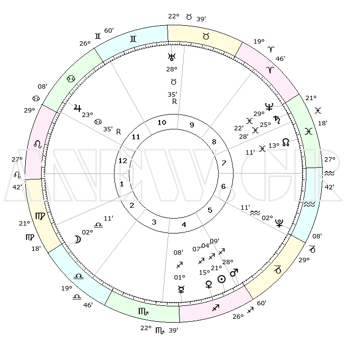 | | ΘΕΣΕΙΣ ΠΛΑΝΗΤΩΝ ΑΣΤΡΟΛΟΓΙΚΟΥ ΧΑΡΤΗ ΤΗΣ ΣΤΙΓΜΗΣ ΑΥΤΗΣ | | | | Πλανήτης | Ζώδιο | Μοίρες | Δεκαήμ. | Σε οίκο | Απόκλιση | | Ακμές των οίκων | | Ηλιος | Τοξότης | 20°56' | Τρίτο | 6 | 23 S 07 | | 1ος | 20°40' | Καρκίνος | | Σελήνη | Ζυγός | 00°37' | Πρώτο | 3 | 01 S 38 | | 2ος | 11°13' | Λέων | | Ερμής | Τοξότης | 00°58' | Πρώτο | 5 | 18 S 34 | | 3ος | 05°03' | Παρθένος | | Αφροδίτη | Τοξότης | 14°57' | Δεύτερο | 5 | 22 S 20 | | 4ος | 04°46' | Ζυγός | | Αρης | Τοξότης | 28°03' | Τρίτο | 6 | 24 S 11 | | 5ος | 10°46' | Σκορπιός | | Δίας | Καρκίνος | 23°35'R | Τρίτο | 1 | 21 N 34 | | 6ος | 18°03' | Τοξότης | | Κρόνος | Ιχθείς | 25°28' | Τρίτο | 9 | 03 S 56 | | 7ος | 20°40' | Αιγόκερως | | Ουρανός | Ταύρος | 28°35'R | Τρίτο | 11 | 19 N 38 | | 8ος | 11°13' | Υδροχόος | | Ποσειδώνας | Ιχθείς | 29°22' | Τρίτο | 9 | 01 S 29 | | 9ος | 05°03' | Ιχθείς | | Πλούτωνας | Υδροχόος | 02°11' | Πρώτο | 7 | 23 S 20 | | 10ος | 04°46' | Κριός | | Β. Δεσμός | Ιχθείς | 13°11' | Δεύτερο | 9 | 06 S 36 | | 11ος | 10°46' | Ταύρος | | Ωροσκόπος | Καρκίνος | 20°40' | Τρίτο | | | 12ος | 18°03' | Δίδυμοι | | Μεσουράνημα | Κριός | 04°46' | Πρώτο | | | |